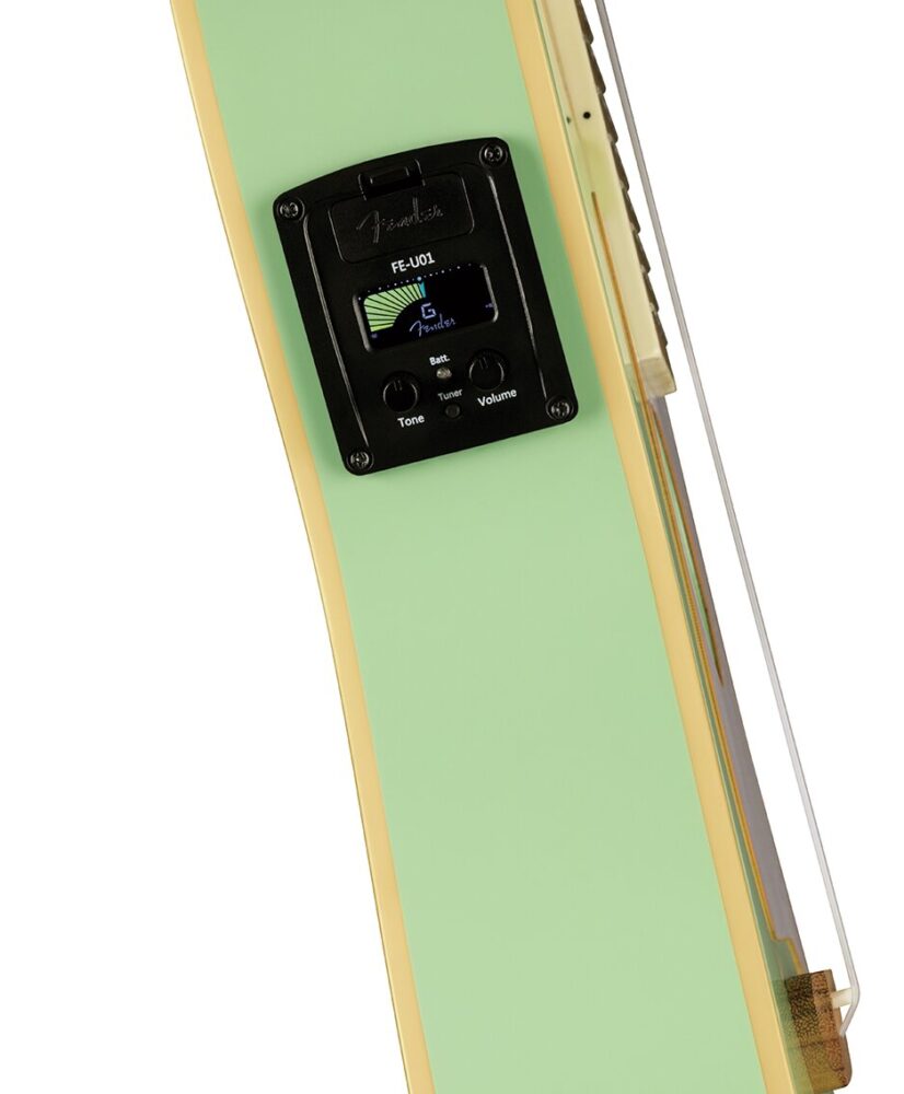 フェンダーの人気モデルであるストラトキャスターやテレキャスターといったモデルのシェイプを採用し、エレキギター同様にアンプに接続して演奏することが可能。また独立したボリュームとトーン・コントロール、内蔵チューナーをもつプリアンプをボディ本体に内蔵しているのも特徴だ。