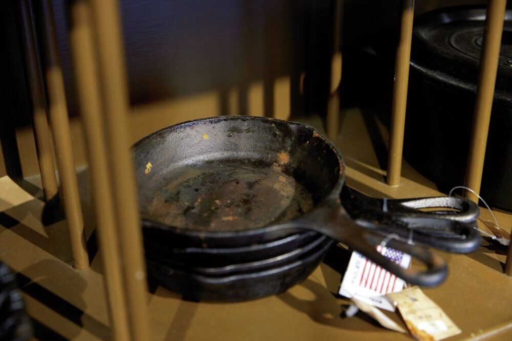 ロッジの小ぶりなスキレット。使用品は風合いが出ているのでインテリアになるし(550円)、実際に使える未使用品もある。1980円