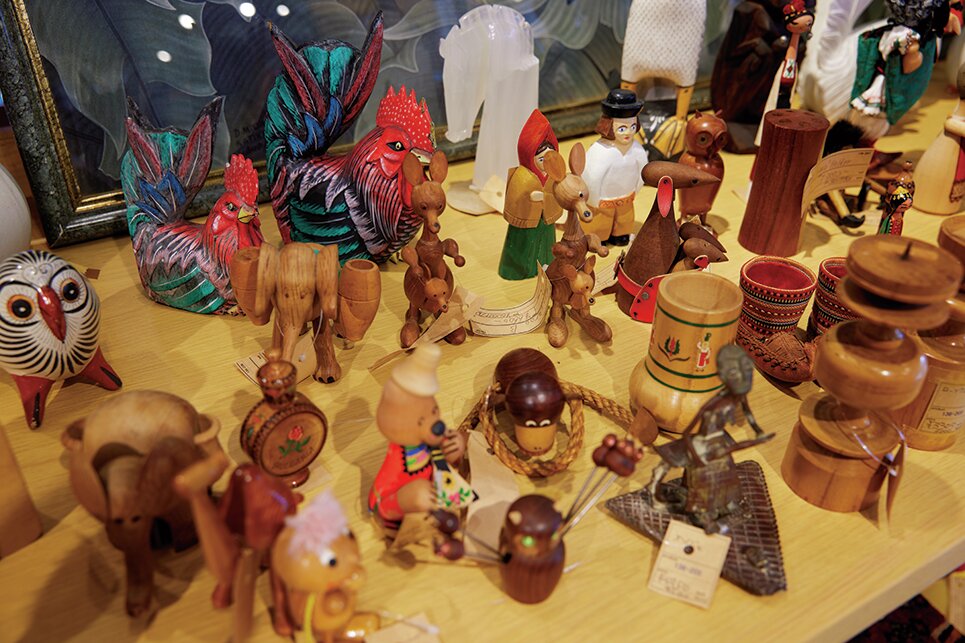 取材時には木製の木彫り雑貨がナインナップ。様々な国のものが陳列されていて、とてかわいらしい。中には今人気の木彫りの熊もあった。