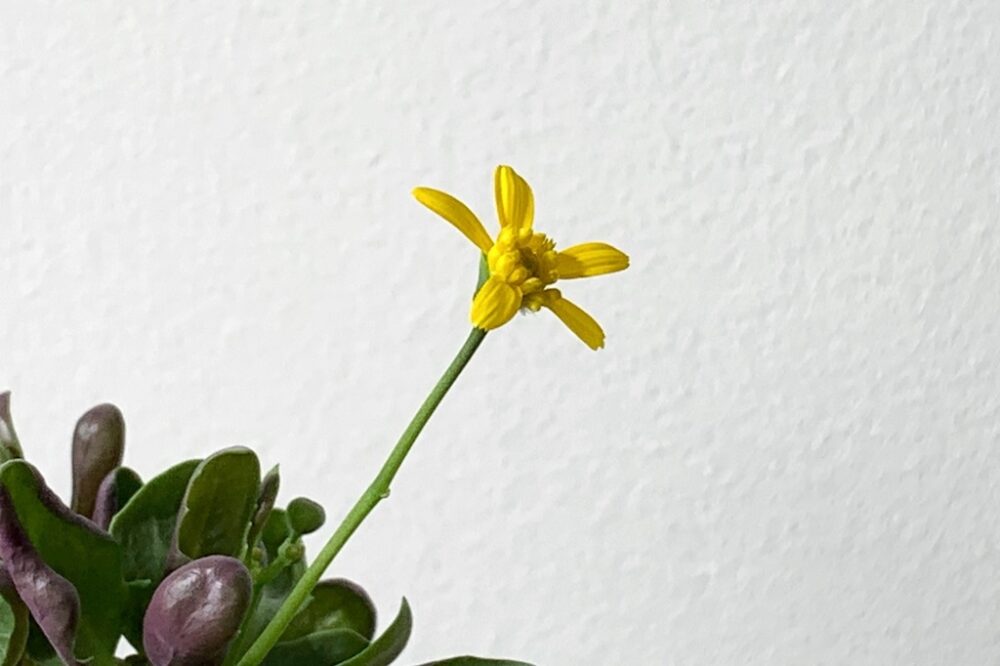 キク科の植物であるオトンナ属は、キク科らしく黄色い小さな花を咲かせます。花付きも良く、生育期には何度も花を咲かせることもあるので、初心者の方でも開花を楽しめるはずです。