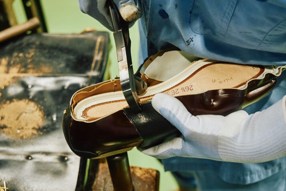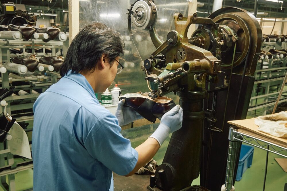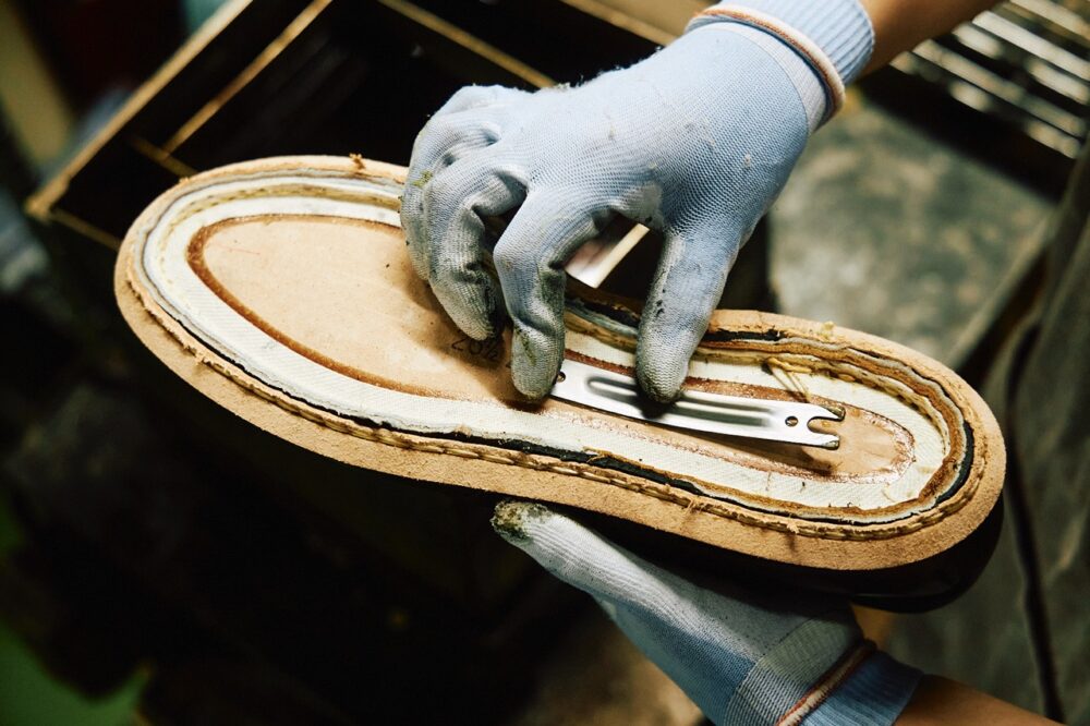 そこで目にしたものは、これまでに海外のシューメーカーの工場も取材をしてきた今回の撮影班でも度肝を抜かれるほど、精緻なモノ作り。その全容は動画としても記録しているので、そちらも合わせてご覧いただきたいが、何がすごいって一つひとつの作業を終え、次の作業に移るたびに、前の作業内容を確認し、以降の作業に支障がないように、細かいチェックを怠らない点。