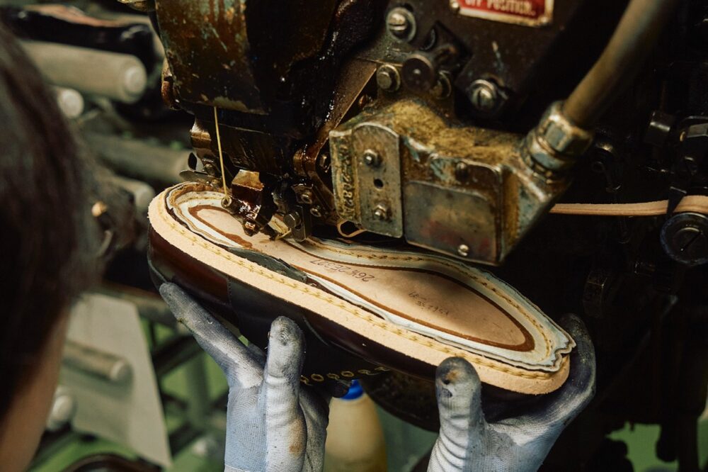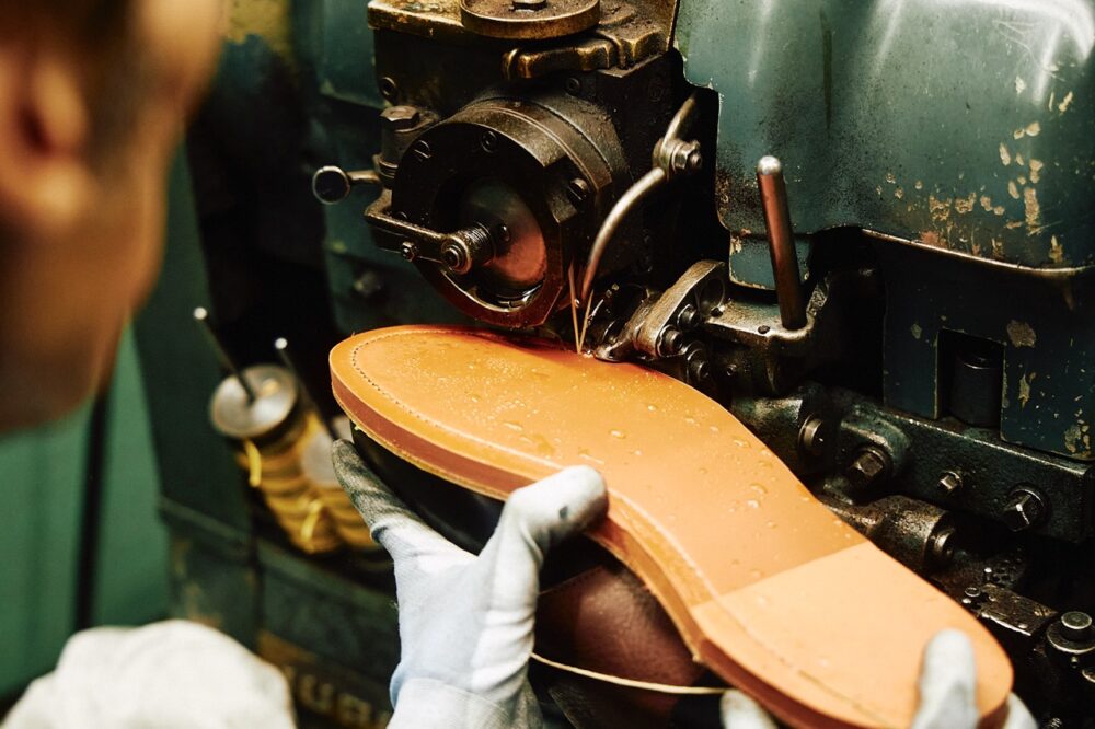 言葉にしてしまうと当たり前のことのように聞こえるかもしれないが、100をゆうに超えるグッドイヤーウェルト製法の工程では、それぞれが特殊な技術や設備を必要とする。「だし縫い」や「すくい縫い」と言った特殊な工程を踏むことでも知られるグッドイヤーウェルト製法。その工程が移るたびに技術者が入れ替わり、使う設備を変えて分業で行うのだが、次の技術者がチェックして、不十分だと感じた場合は前に戻り、を繰り返していく。