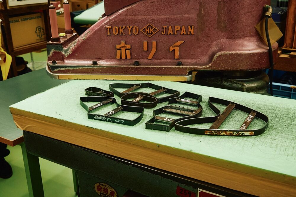 加えて、この別注アイテムには工場でしか確認できない隠れたこだわりがたっぷり。たとえば、スチールシャンク。シャンクとは革靴の土踏まず部分を支えるとともに、型崩れを防ぐ役割を担うパーツ。近年ではシャンクを使わずに作る靴もあるし、樹脂製のシャンクでも代用できるのだが、本別注では正真正銘のスチールシャンクを使っていることがわかった。