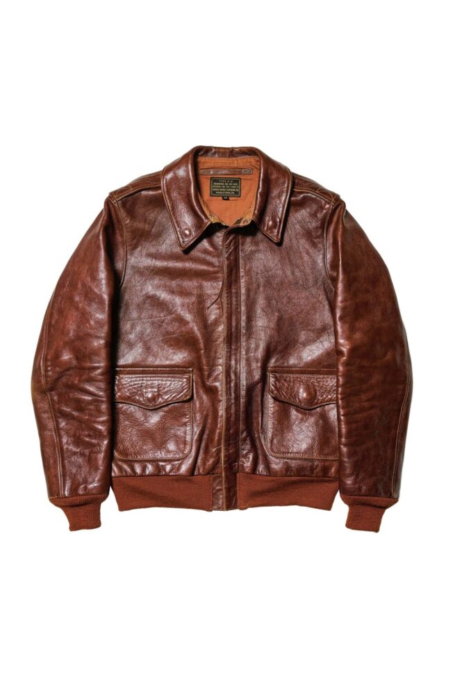細部にわたる精緻な作り込みとその革質の良さで、フライトジャケット好きから支持を受けるレインボーカントリーのA-2。(上)ラフウエア1401-P[タバコブラウン]、(下)ラフウエア23380[ダークシールブラウン]、ともに22万円、10月頃入荷予定