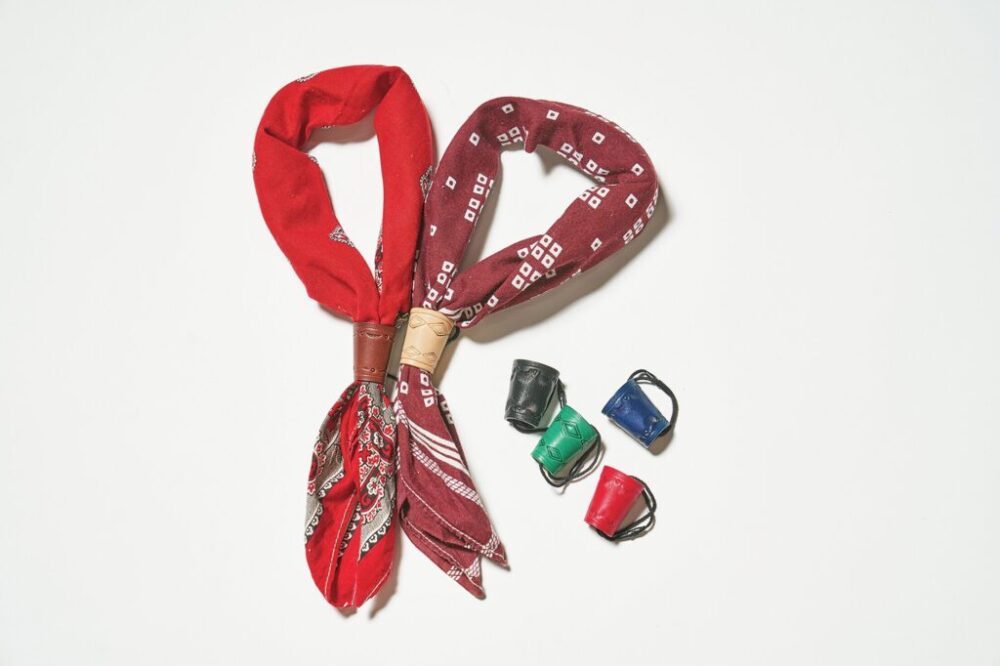 地元のレザークラフトショップ「SUGAR」が手掛けるバンダナスライダー。レザー製で、革の床面の摩擦により落ちてこないスグレモノ。ブラック、レッド、ネイビー、グリーン、ナチュラル、ブラウンの6色展開。3300円