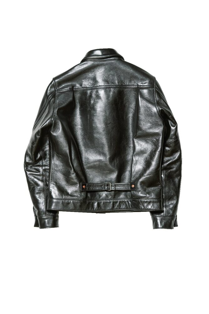 Y2レザーとの別注アイテム、インディジャケット。これまでダークシールブラウンのオイルドホース製、ディアスキンと2型のインディジャケットをリリースしたが、こちらは第3弾。オイルを多く含んだプルアップホースハイドで、味も出やすい。12月発売予定。19万2500円