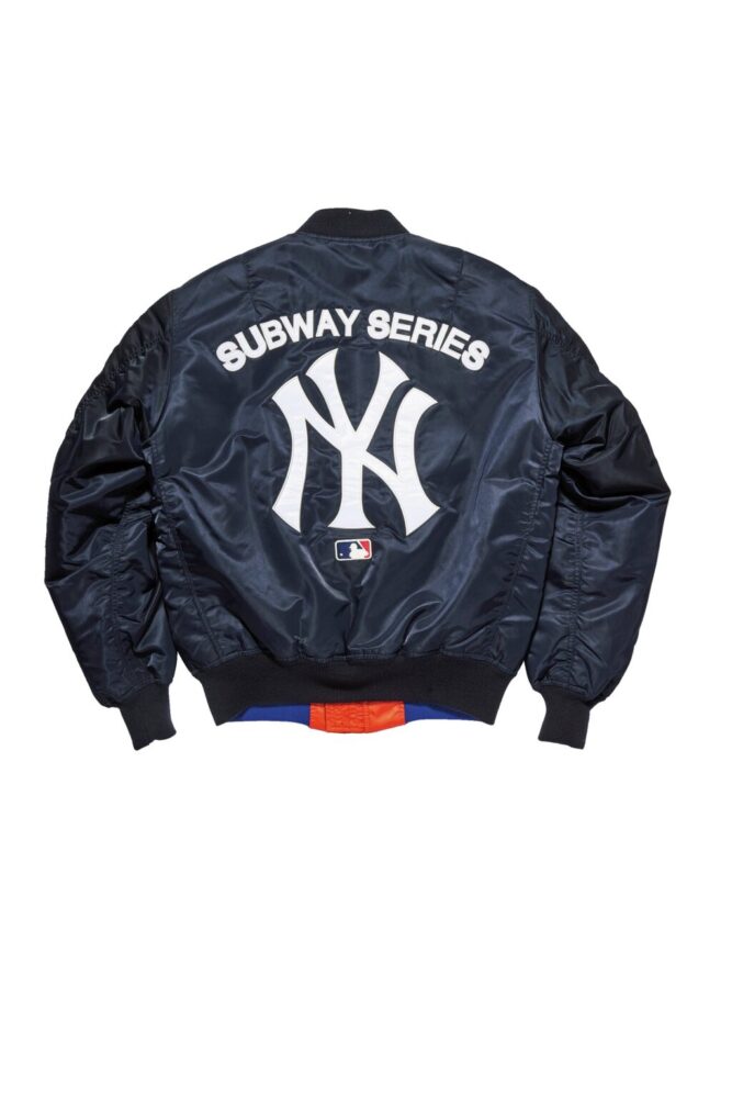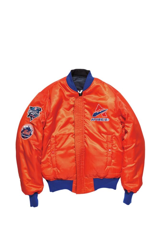 アヴィレックスが得意とするフライトジャケット、MA-1をベースにニューヨークヤンキースのネイビー、メッツのブルーとオレンジを使用したリバーシブルのジャケット。背面にはそれぞれの球団のロゴが大きく入れられ、サブウェイシリーズのグラフィックも入れられる。3万9600円
