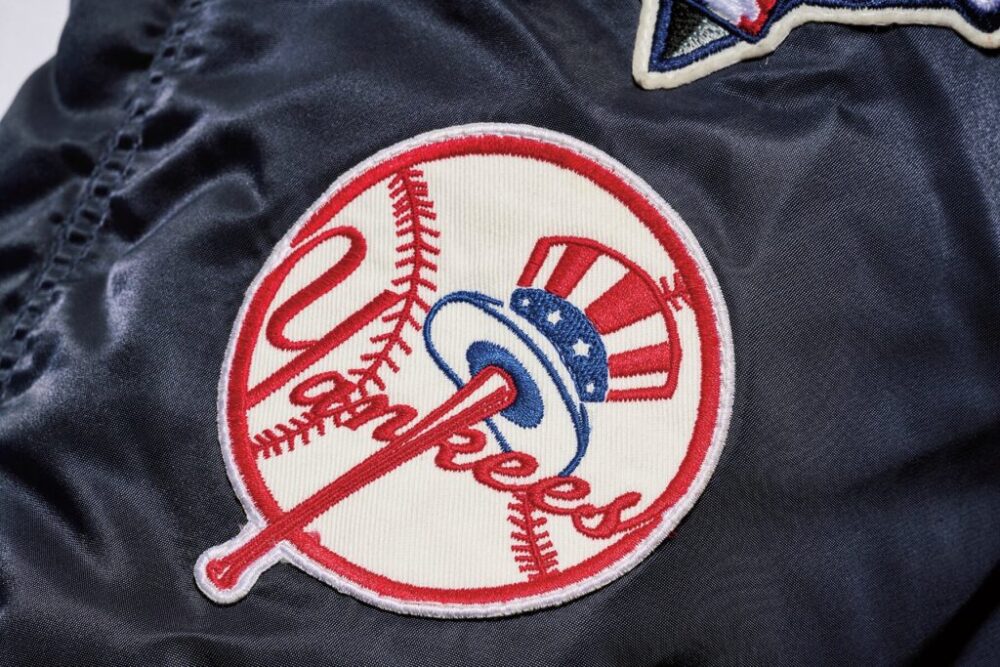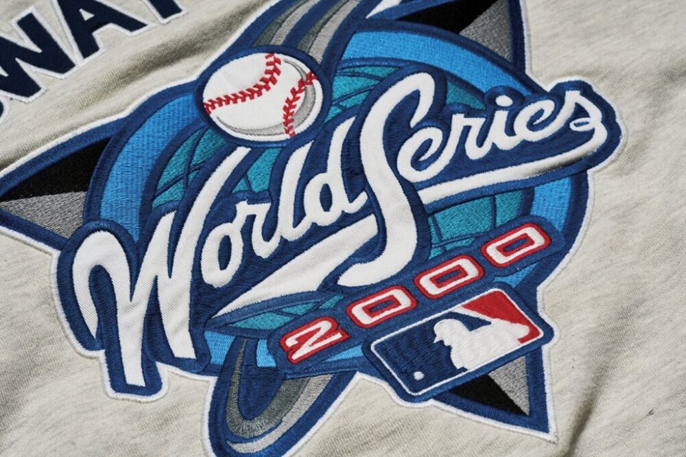 ニューヨーク同士の闘いで白熱した2000年ワールドシリーズのオフィシャルロゴをバックに左スリーブにはニューヨークヤンキース、右スリーブにはメッツのロゴが入れられる。1万5180円