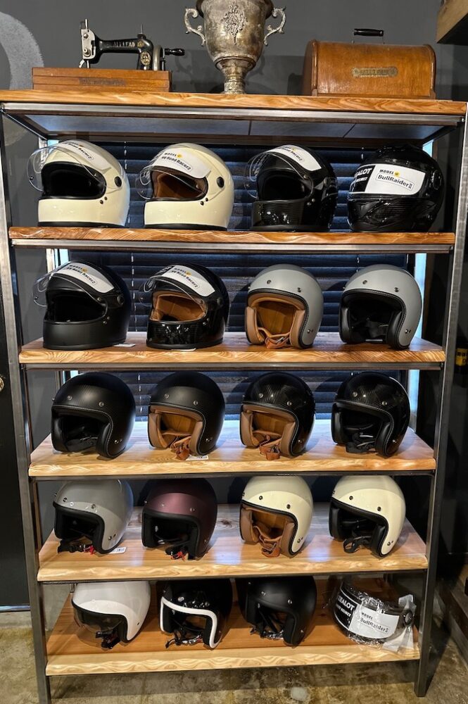 さらにウエアやアクセサリーはCLAY SMITH、JAM’S GOLD、MOON EYES、マットモーターサイクルズ、DearStockなど。ヘルメットはGODBLINCなどをメインにセレクトする。