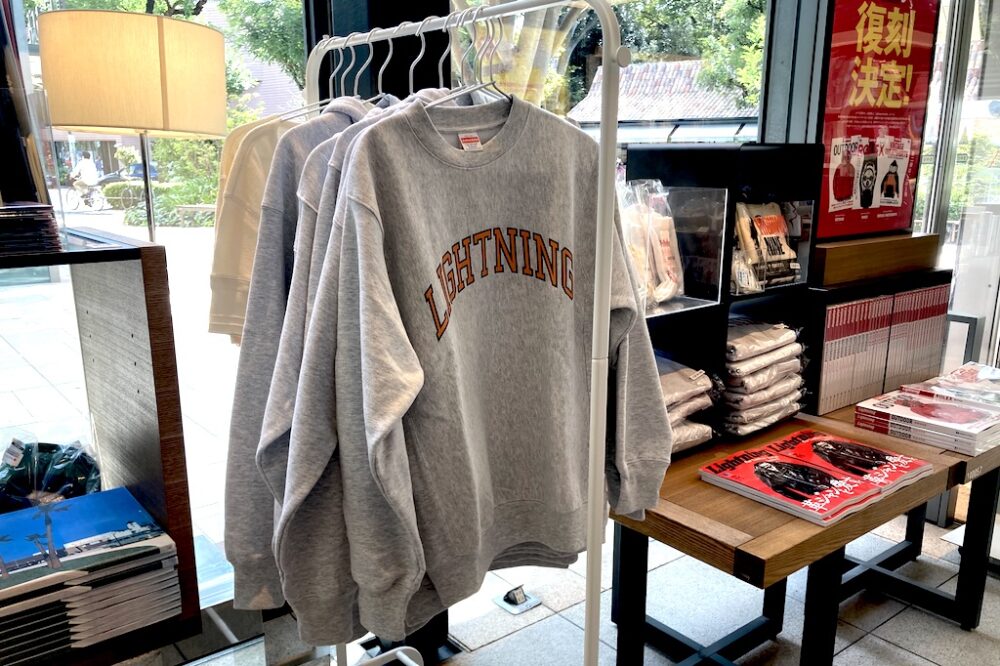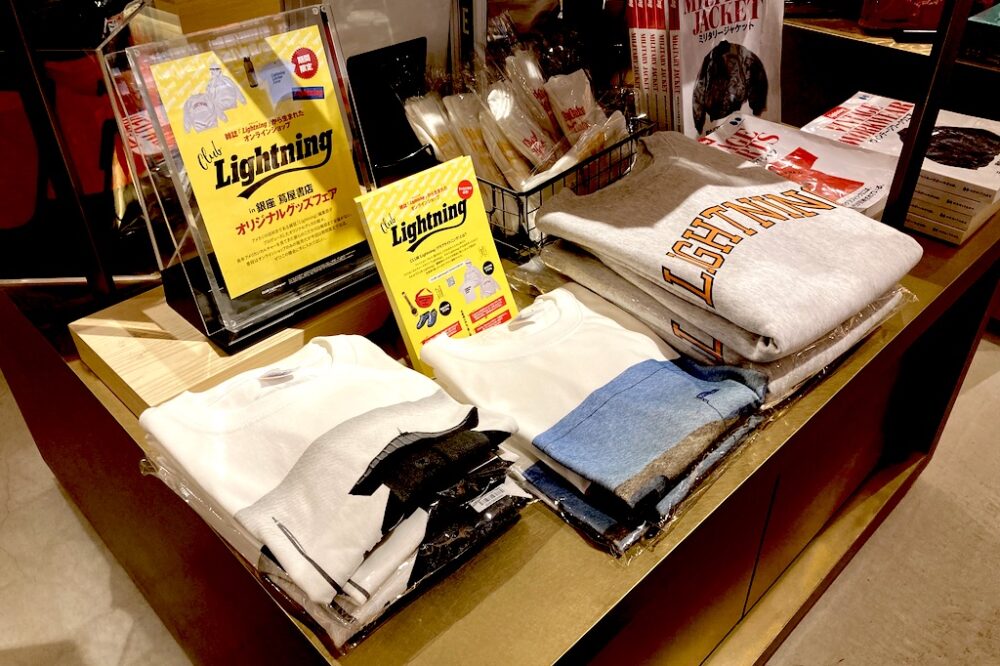 こちらも復刊されたLightning Archivesをメインに、クラブライトニングのオリジナルグッズを展開。これからの季節はLightningのオリジナルスウェットが注目株。