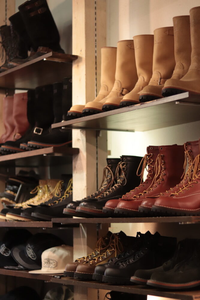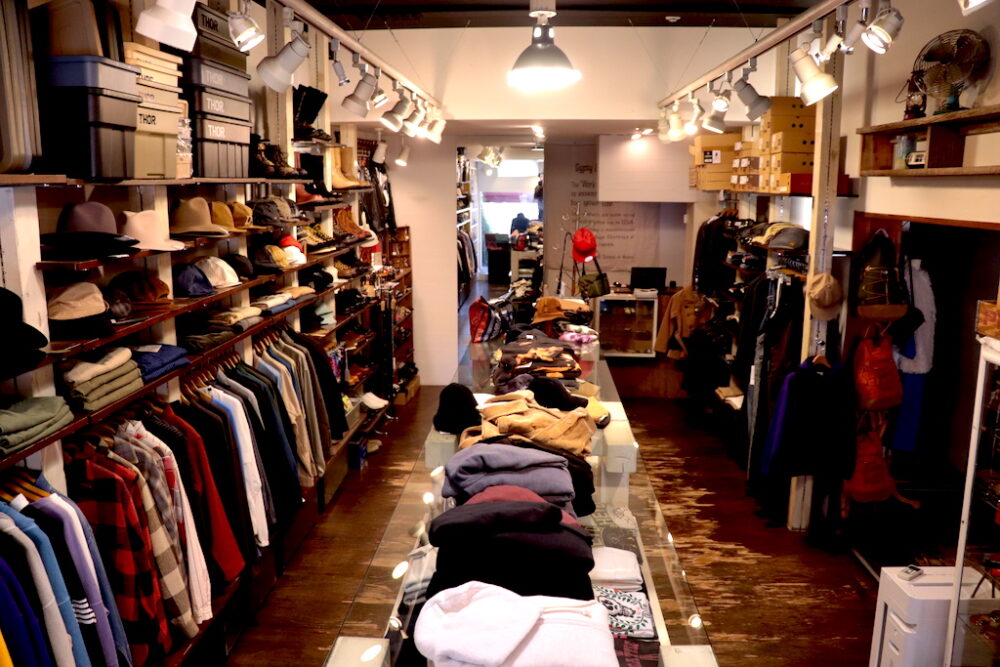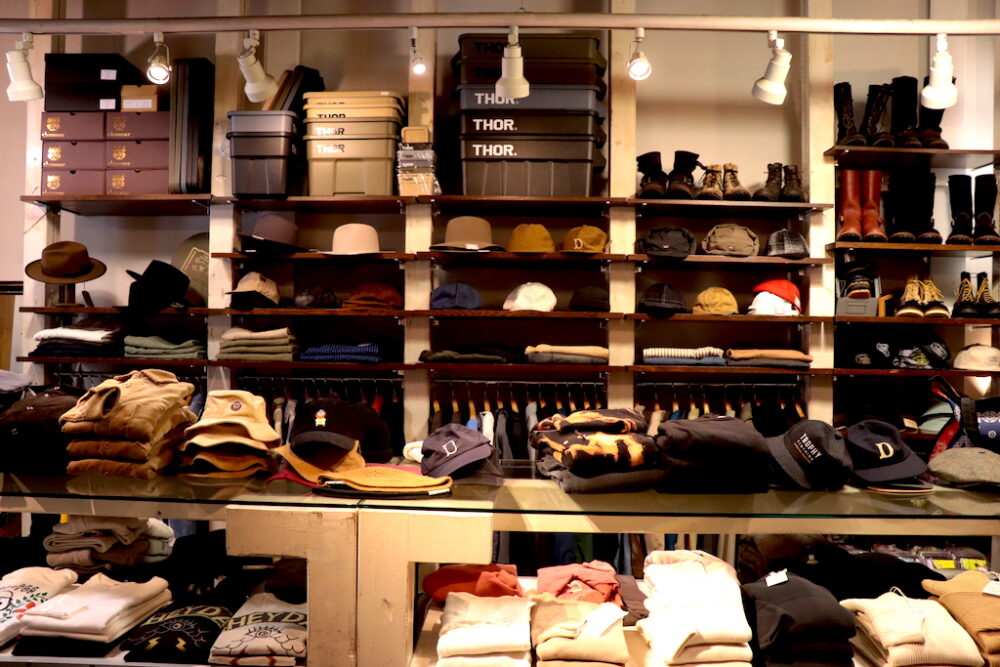 ヘリテージやクラシックなアメリカをベースに、クオリティに定評があるウエアがメイン。取り扱うブランドはFINE CREEK LEATHERS、FOUNTAINHEAD LEATHER、ANACHRONORM、GYPSY&SONS、FULLCOUNT、SUGAR&CO、BLACK SIGN、TROPHY CLOTHING、THE H.W.DOG&CO、LANGLITZ LEATHERS、WESCO、WHITE’S BOOTSなどと充実。