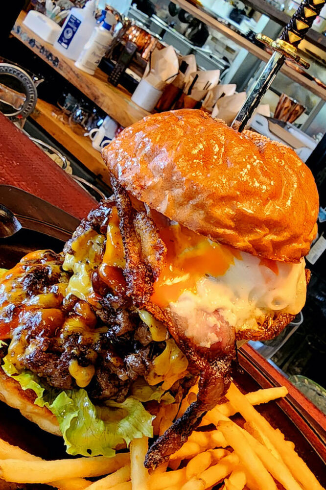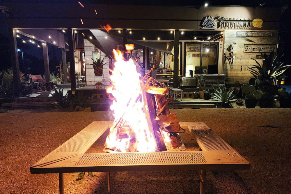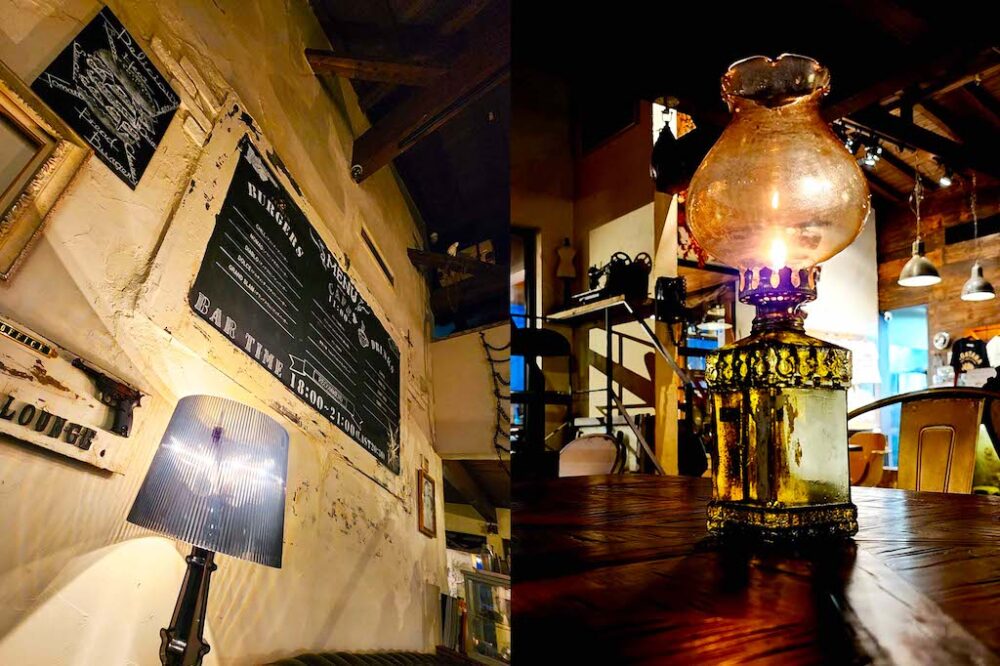 昼はこだわりのグルメバーガーとカフェとしての顔があるMONTANAは、日が暮れてくるともうひとつの顔であるBAR MONTANAへと変化する。オーナーの気まぐれだと言うけれど、東京ではできない焚き火やランタンを灯した雰囲気のある空間になるだけでなく、全体的に低照度の照明の演出で、大人のバーとしての雰囲気に包まれる。オーナーが全国のアンティークショップを巡って手に入れてきたファニチャーや照明で彩られた空間はさらに雰囲気がアップした空間は格別。大人がゆっくりと過ごせる空間は、グルメバーガーとオリジナルのカクテルの合わせ技で楽しみたい。まだ昼間の営業しか訪れたことがない人は、夜の営業も訪れてみるのがおすすめだ。