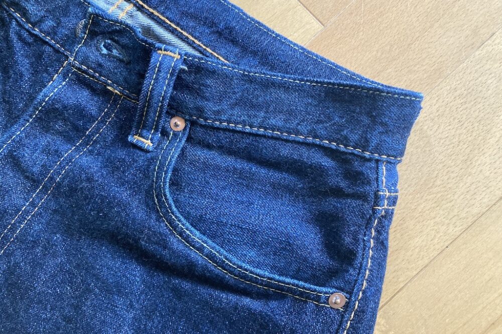 通常のインディゴ染めの生地と、本藍染めデニムの2種類の生地を使っている(さらにポケットスレーキにはライトオンスのデニムを使用)ので、それぞれの色落ちもレポートしていきたいところ。