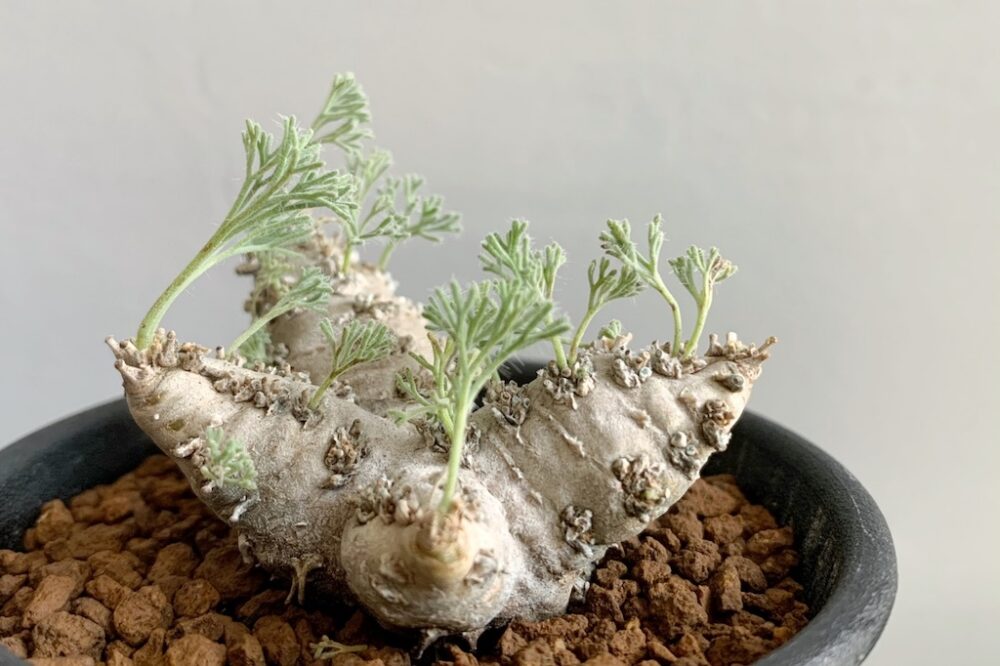 また、ムルチフィダの様に塊茎がソーセージ状にはなりにくく、樹形はコンパクトでムッチリとしており、成熟した株でも10㎝前後と言われる小型種です。