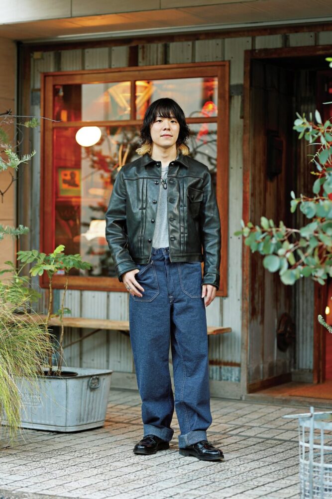 1995年の創業以来、“ヴィンテージ古着の忠実な復刻”をテーマに、一貫したスタイルで世界中にファンを持つ、ジャパンデニムの雄。そんなウエアハウスの東京店で注目の若手スタッフとして知られる岡本さんの愛用レザージャケットを紹介してもらった。