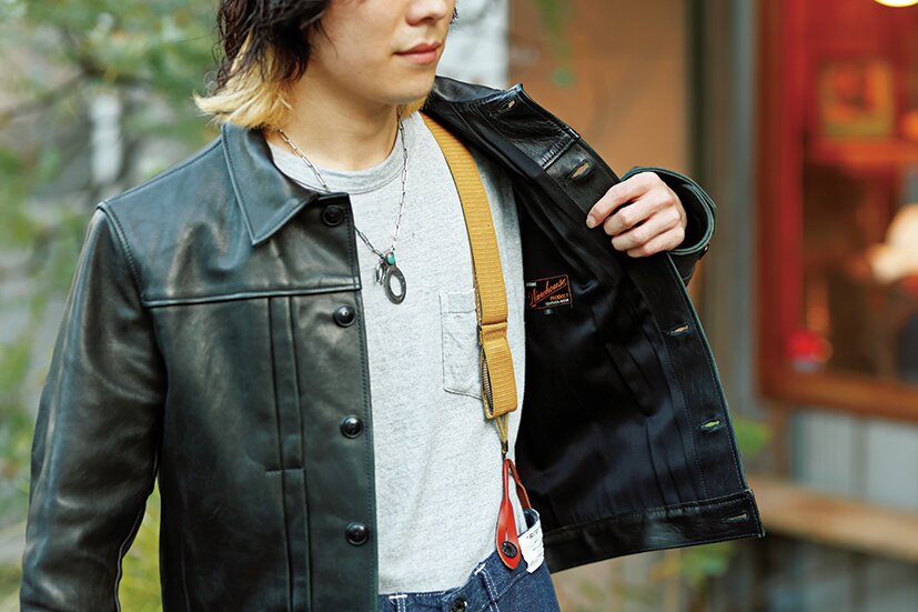「レザージャケットを欲しいと思っていましたが、自分のキャラだとダブルのライダースジャケットは合わないし、シングルだとどこか物足りない。そんな時に出会ったのが、このファーストタイプのレザージャケットでした。