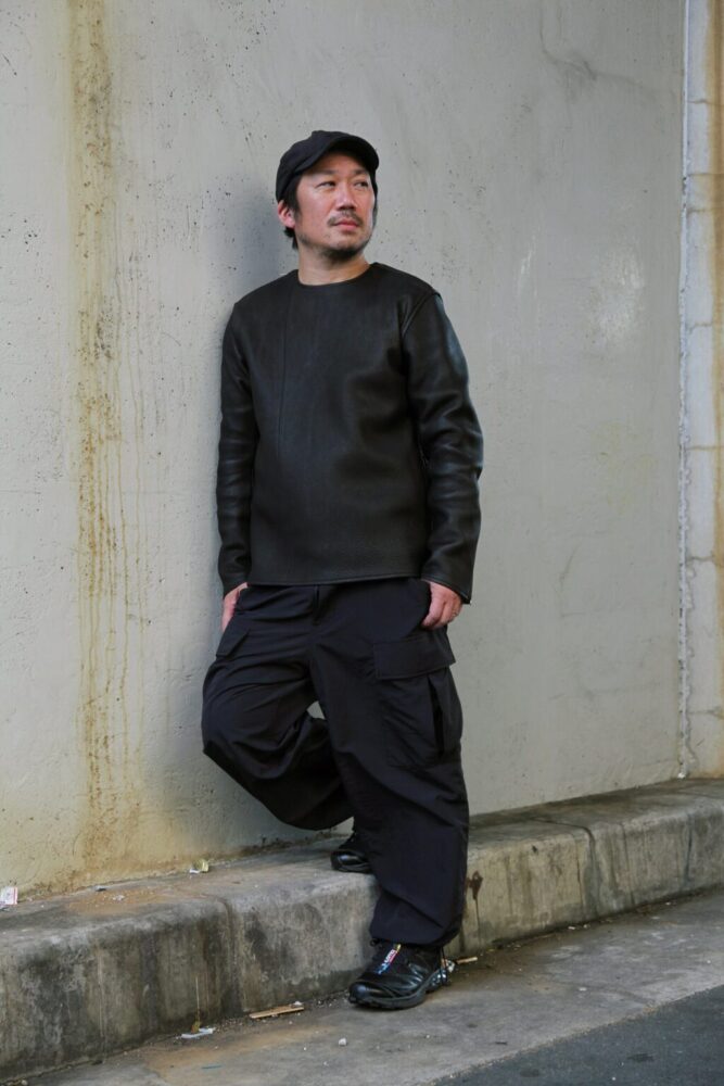 ノーカラーでフロントにジッパーのない「プランツ」は、アウターにもインナーとしても活躍するモデル。肉厚な鹿革を使用し柔らかくて着やすいのが特徴だ。このモデルを着こなすキモは「あくまでシンプルに」。山﨑さんのようにヘッドウエアでアクセントを付けたい。