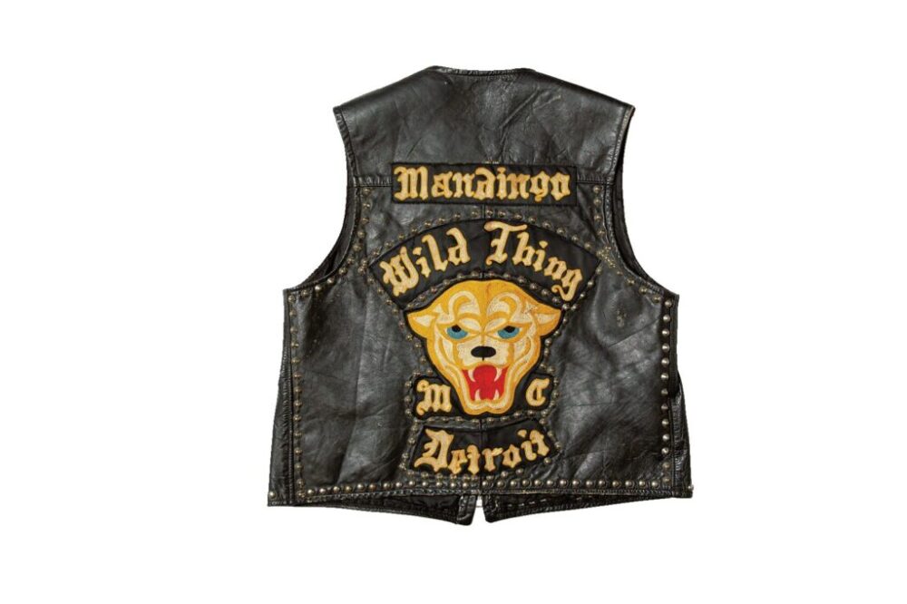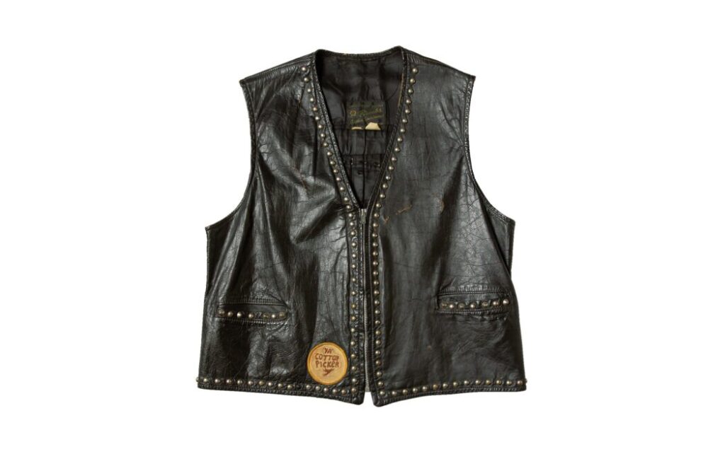 ブコのOEMも手掛けていたと言われるブルックスのレザーベストに、当時のアウトローMCがカスタム。センス良いスタッズカスタムも◎。11万円