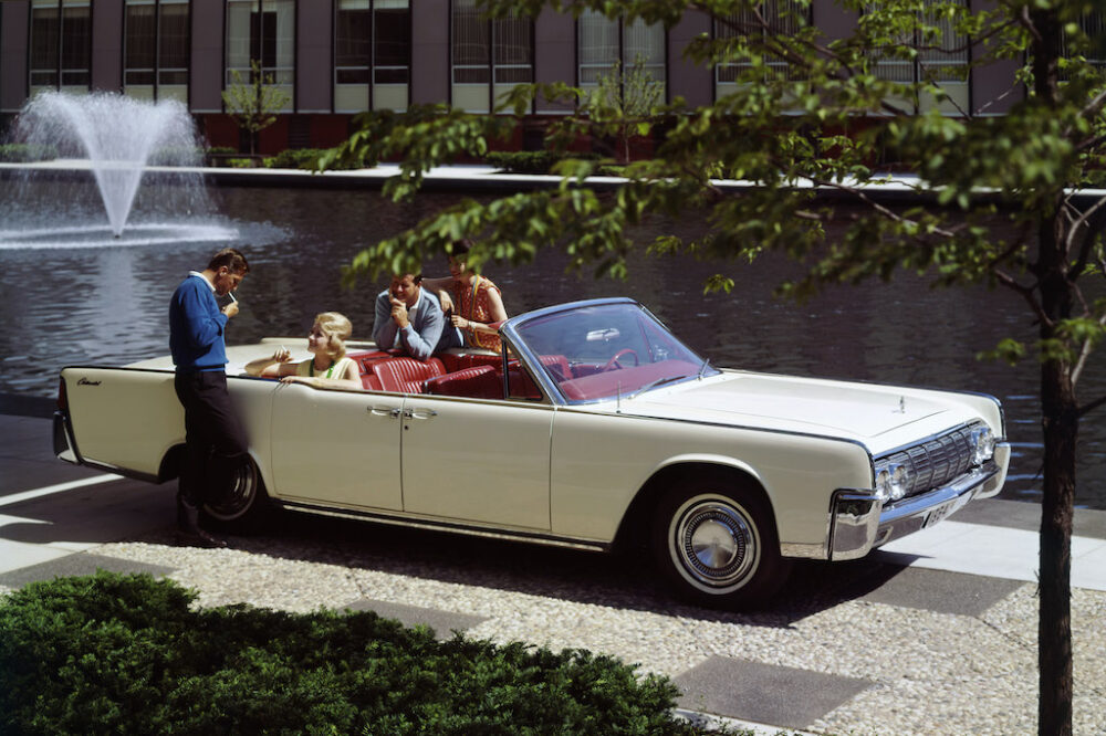 コンバーチブルというと2ドアモデルがベースになっているのが主流だけれど、アメリカにはかつて4ドアのコンバーチブルも存在した。写真は1964年式リンカーン・コンチネンタル・コンバーチブル(Photo by Lincoln Motor Company)で、これまた珍しい観音開きの4ドアにして、大きなソフトトップは電動でトランクの中に収納されるというモデルだった。4ドアのフルサイズボディでルーフを開けたスタイルは、ボディの長さがかなり強調されて独特な存在感に。現在ではおそらく衝突安全基準をクリアできないデザインは、まさに時代が許したスタイルである。