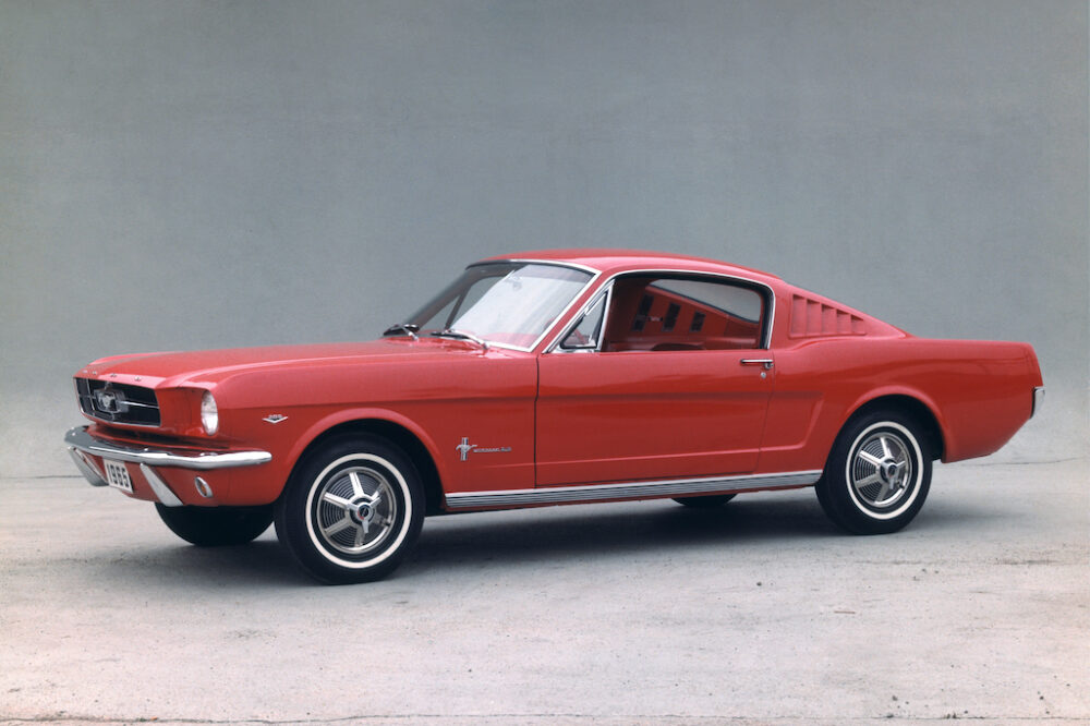 2ドアボディを基本としながらボディ後方がなだらかにひと続きのラインで傾斜したデザインになるボディのこと。わかりやすく言えばトランク部分が独立したデザインになっていないスタイルで、アメリカ車では初代フォード・マスタングを筆頭に、各社が1960年代中盤以降に登場させた2ドアクーペの亜種がこれ。同じようなデザインは日本車や欧州車にも登場して、スポーティなルックスのクルマの代名詞になった。似たようなデザインでトランクスペースがリアガラスごと開閉できるデザインはハッチバックと呼ばれる。写真は1965年式フォード・マスタング・ファストバック(Photo by Ford Motor Company)