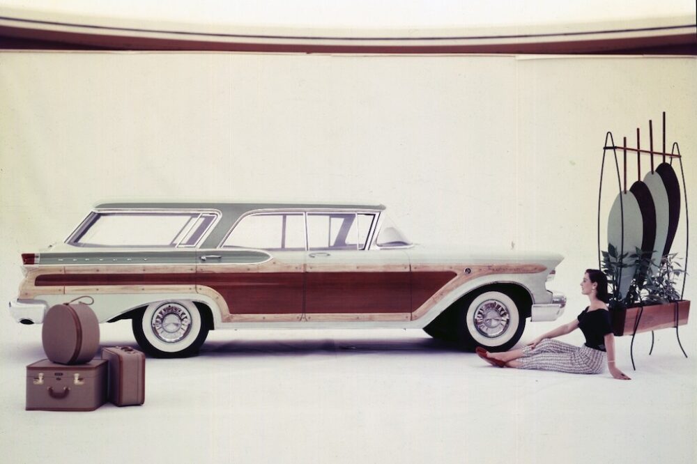4ドアセダンのトランクスペースの上部を拡大し、乗車スペースと荷物スペースが一体となったボディデザインがワゴン。元々ステーションワゴンと呼ばれていたのは、駅の送迎に人や荷物を積んでいくのに重宝するモデルということでそう呼ばれた。現代ではワゴンという呼び名が牧歌的すぎるせいで、シューティングブレーク、エステート、バリアントなどといった名前で呼ぶブランドも多い。写真は1957年式マーキュリー・コロニーパークワゴン(Photo by Ford Motor Company)
