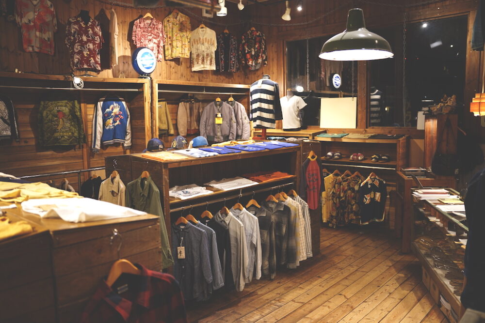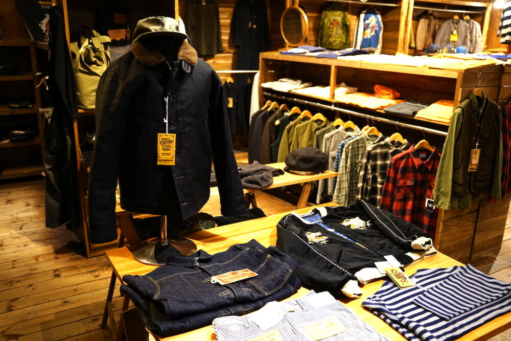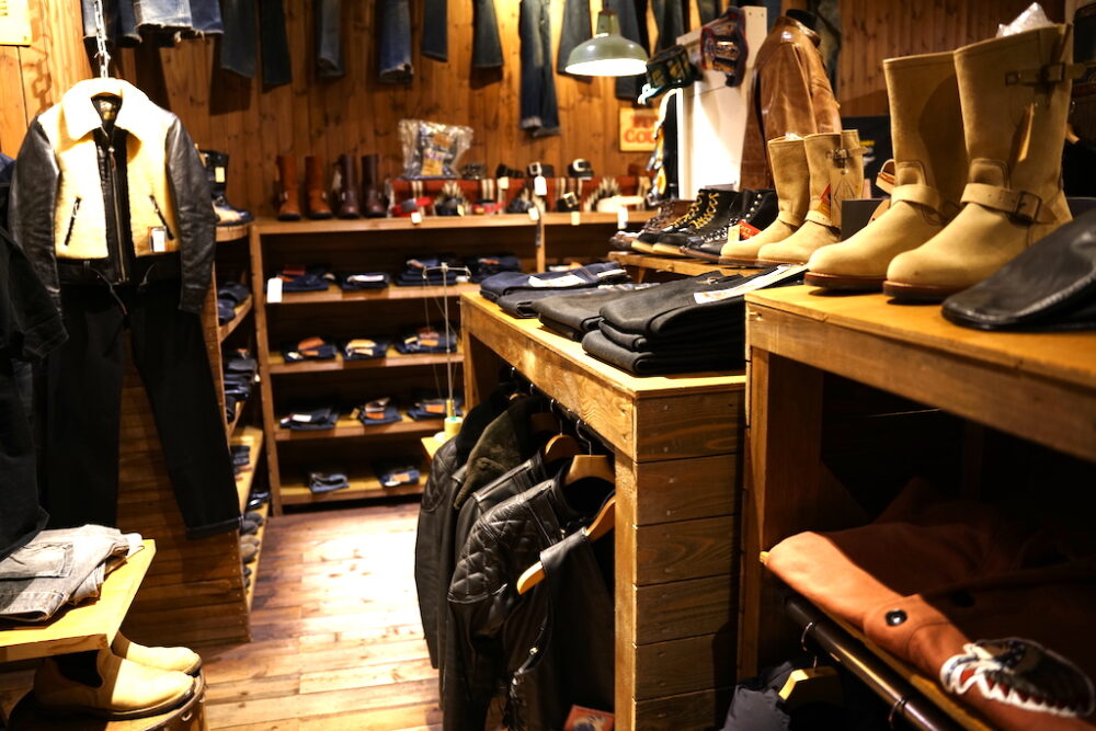 取り扱うブランドは、FREEWHEELERS、WAREHOUSE、東洋エンタープライズ、WEST RIDE、COLIMBO、TOYS McCOY、THE FLAT HEAD、FULLCOUNT、LANGLITZ LEATHERS、WHITE’Sなどと揺るぎないラインナップ。