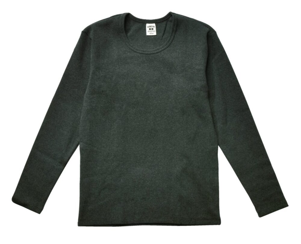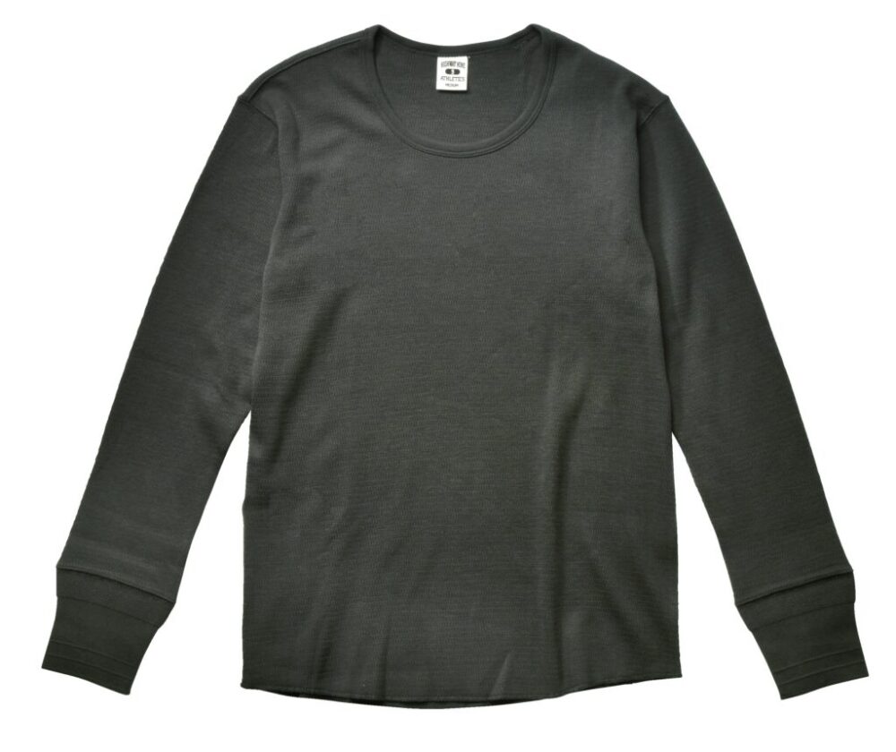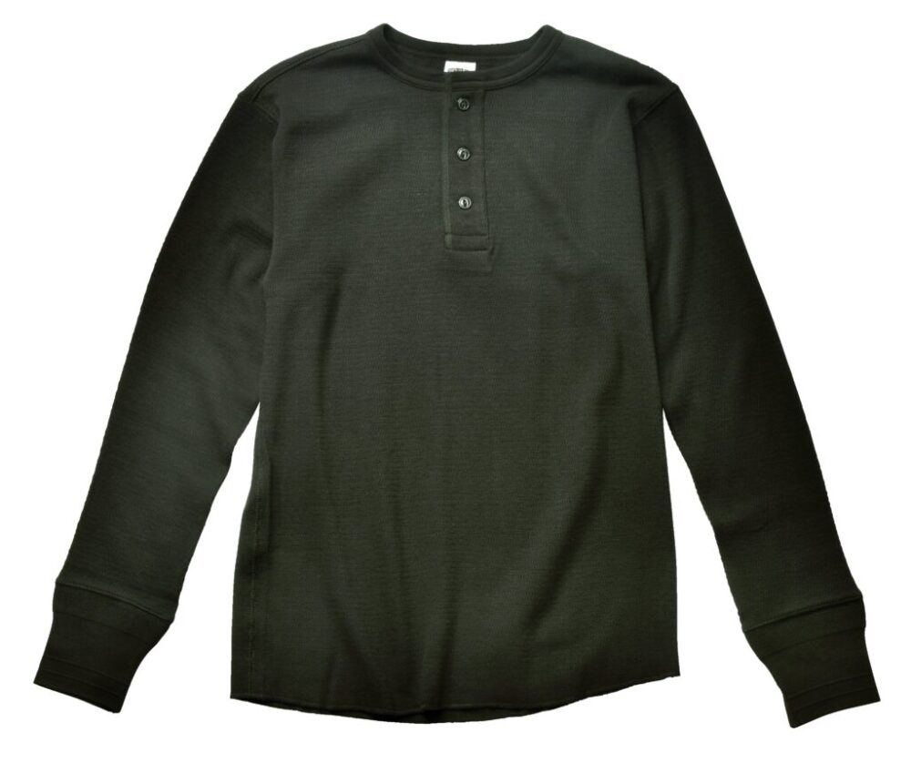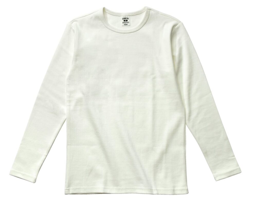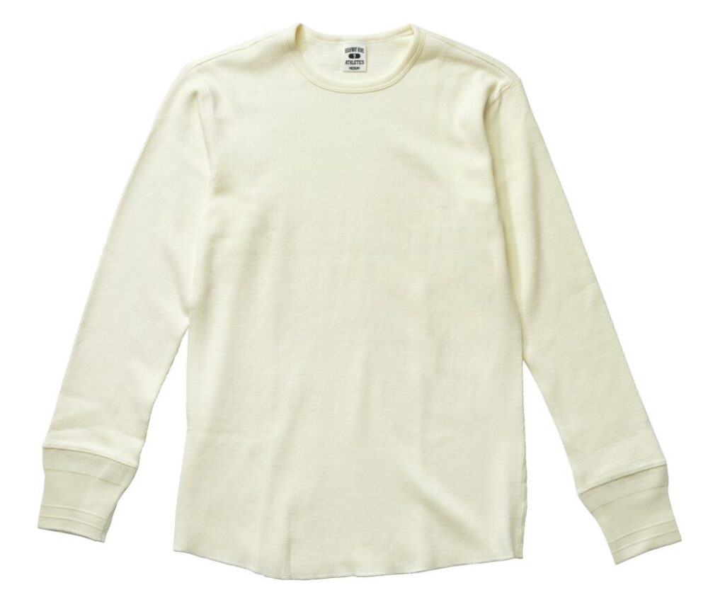 蜂の巣柄に編み込まれたサーマル素材を使用し、肌触りが非常にいいのが特徴。袖口はリブの編み立て仕様に。クルーネック、Uネック、ヘンリーネックが選べ、カラーはリブT同様の3色をラインナップ。