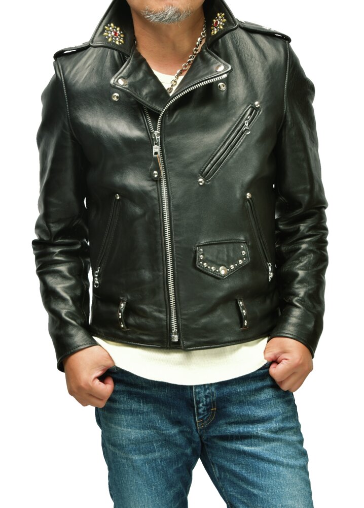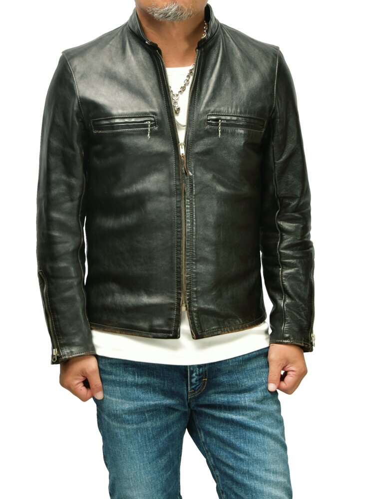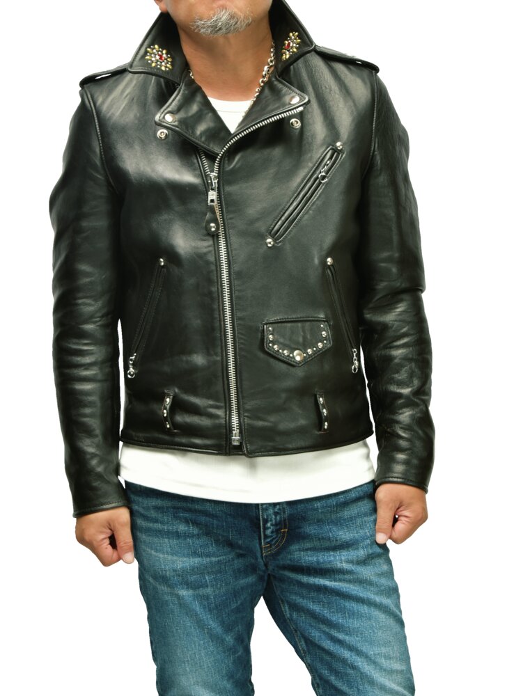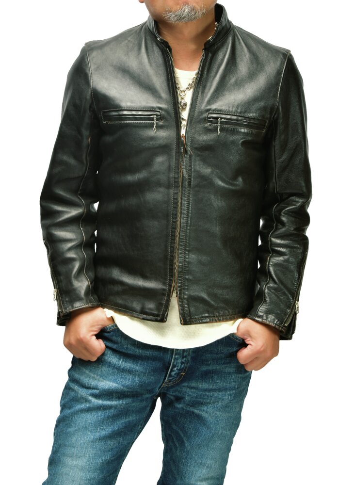 モヒカン小川の私物革ジャンとハイウェイナインを実際に合わせてみた。身長175cm・体重72kgのモヒ小川はリブTシャツのLサイズをチョイス。使用した革ジャンはバズリクソンズのG-1、BUCO J-100、ショット・ワンスター。どう? 最高の着丈じゃね?
