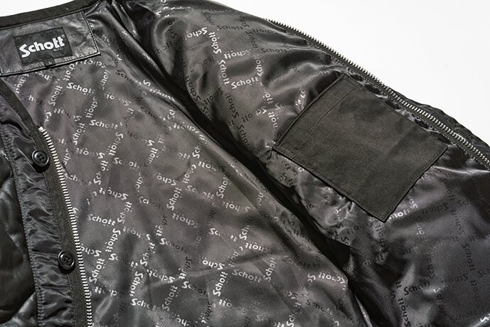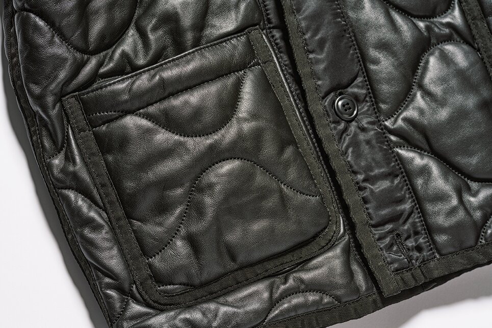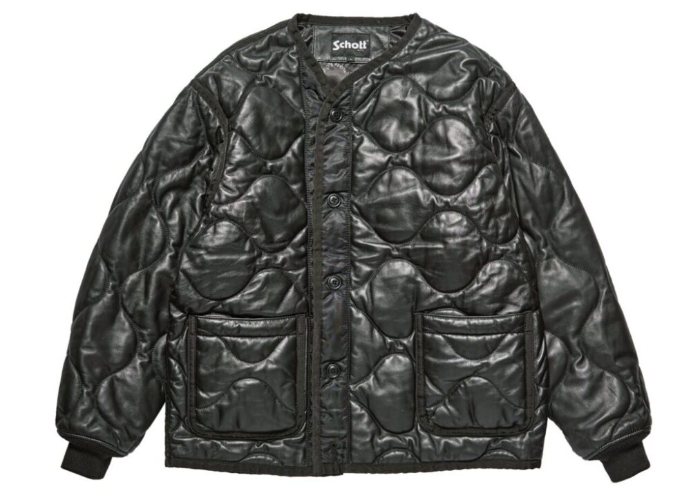 「M-65ライナーをSchottが作ったら……」というコンセプトのもとに誕生した1着。0.6㎜厚のラムレザーをオニオンキルトで仕上げ、パイピングテープや前立てはあえてヘビーナイロンを使用してライナーらしさを残したディテールワークも見所。8万8000円
