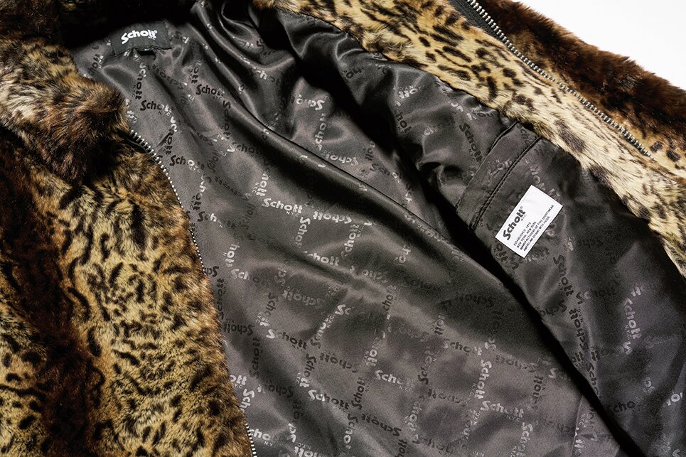 ミドルレングスのレオパードファーをクラシカルなジップアップのスポーツジャケットに落とし込み、ありそうでなかった絶妙なバランスに仕上げられたファージャケット。ジップのパイピングにレザーを採用した無骨な仕様にSchottらしさを見る。4万1800円