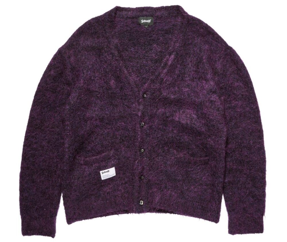 スーパーキッドモヘアのカーディガンタイプ。スーパーキッドモヘアはカシミアの柔らかさとモヘアの強さを足しような、柔軟さと耐久性を両立し、独特な艶感があるのが特徴。上品な質感だが、レザーなどとの相性も良く幅広いレイヤードを楽しめる。2万9700円