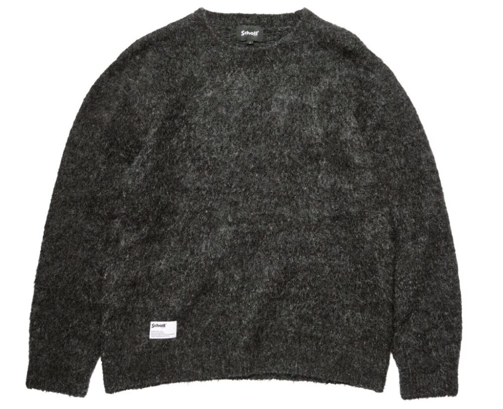 貴重な生後5カ月頃のアンゴラ山羊のスーパーキッドモヘアを使用するクルーセーター。ローゲージで編みたて、裏毛編みで仕立てることでストレスのない着心地を実現。インナーにもライトブルゾンの上にも着用できるシルエットに仕上げられている。2万6400円