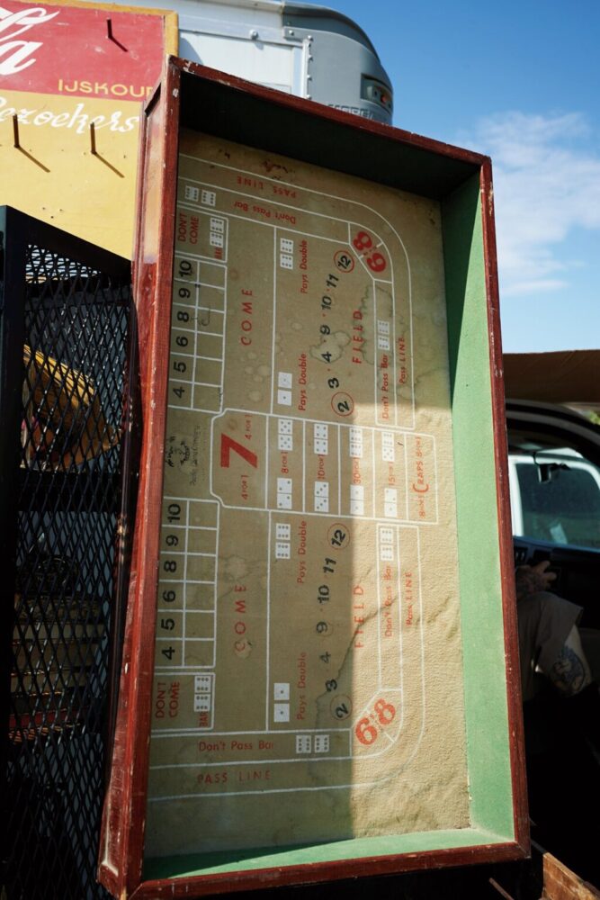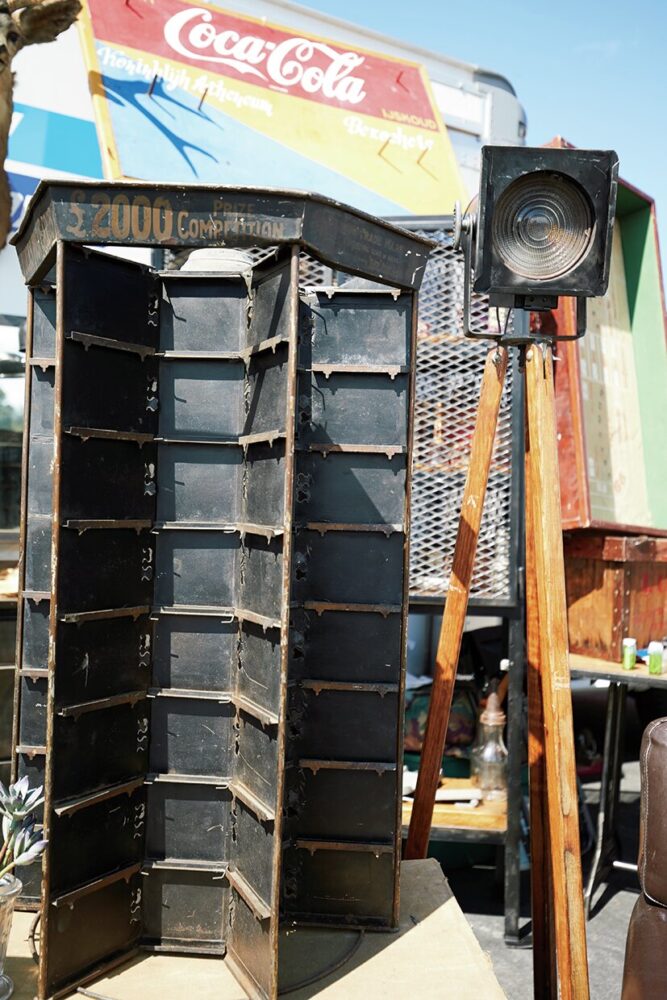 まずスタジアム周辺のエリアは比較的新しい商品を扱うお店が立ち並ぶ。またスタジアム正面の左側エリアに抜けるとアンティーク家具やインテリア雑貨、アクセサリー、アート作品などのホームアイテムを扱う店舗が充実する。そしてさらに川を渡った奥のエリアにはアパレルやシューズなどの古着を中心に扱う店舗が集まっている。