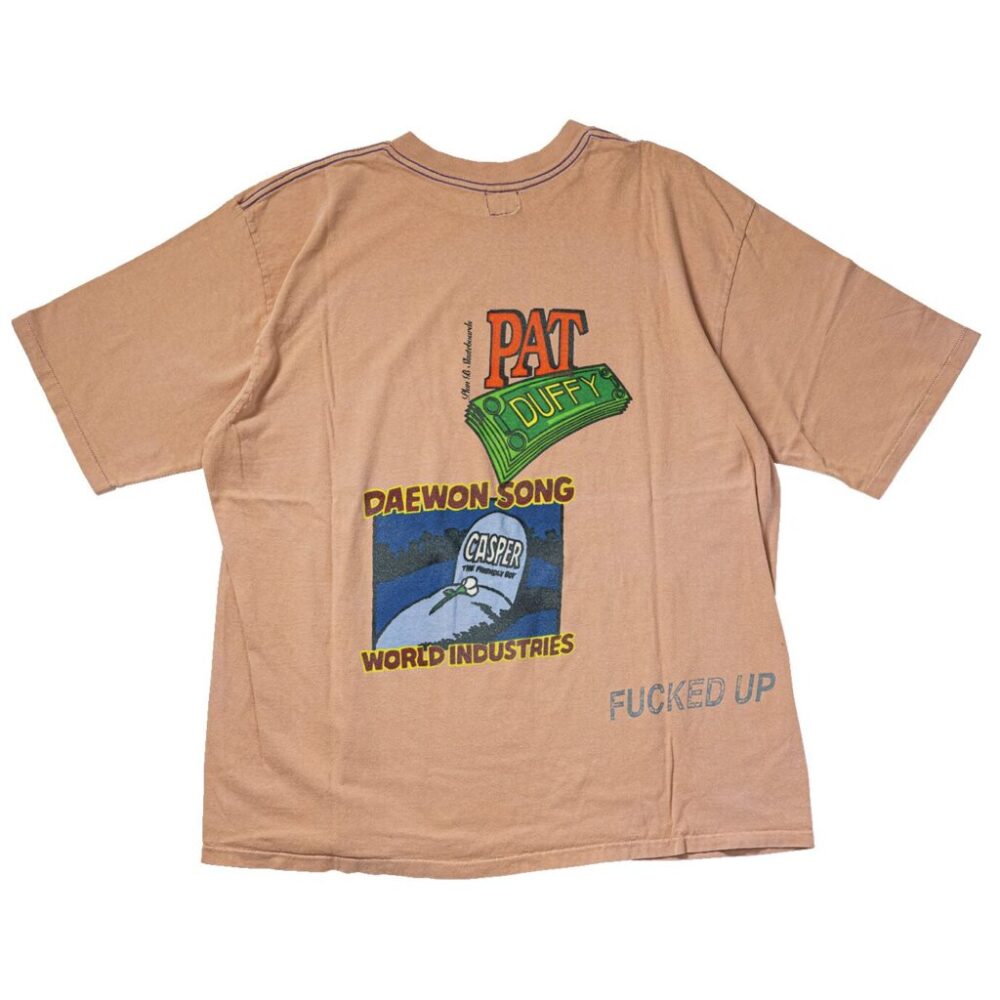 SMAとWorld Industriesが混在してた時代のTシャツ。バックにsplit personalityが入った貴重な一枚。黄色と青も存在するが、どちらにもこのバックプリントは入っていない。