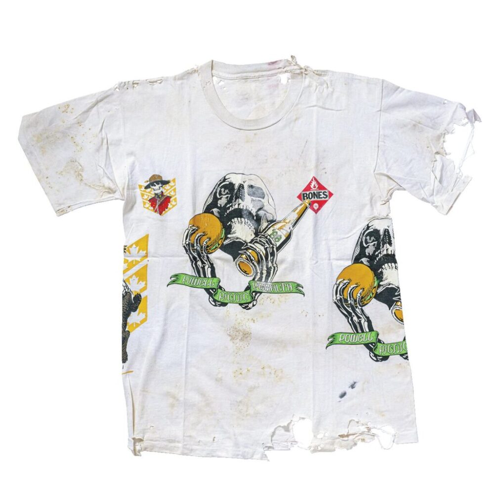 パウエルピクニックと呼ばれる珍しいグラフィックが2つ入ったマルチプリントTシャツ。世界でもこれしか見たことがないことから、状態は悪くても、大切に保管している逸品なんだとか。