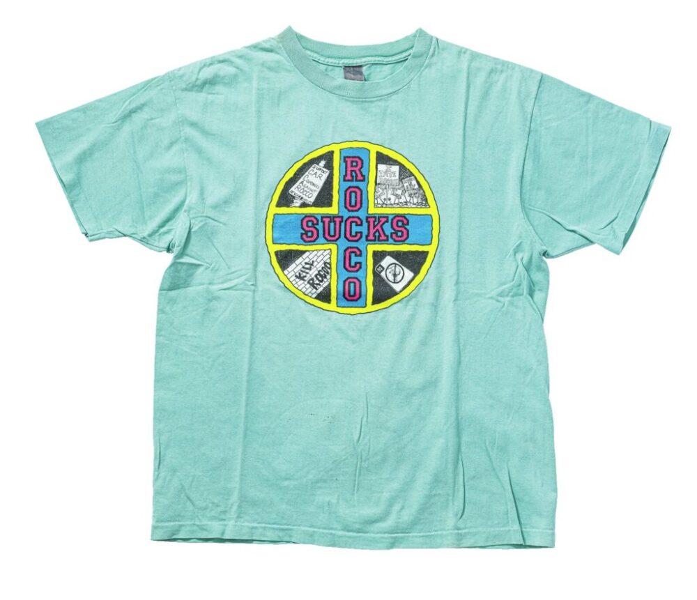 KILLやSUCKSの文字が入った、スティーブ・ロッコを思いきりディスったTシャツ。当時のロッコは相当なやり手だったことから、一部の人間には相当嫌われていたのではないかと推測できる。