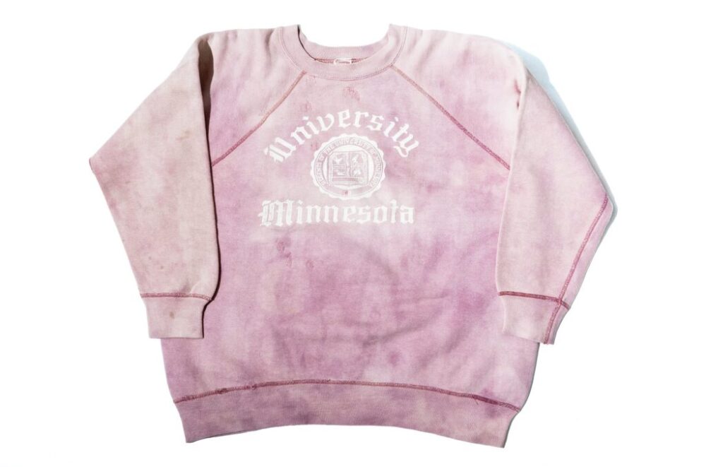 まるでブリーチしたような生地感となったチャンピオンのスウェット。ミネソタ大学のプリントであるが、なんともワイルドな印象。