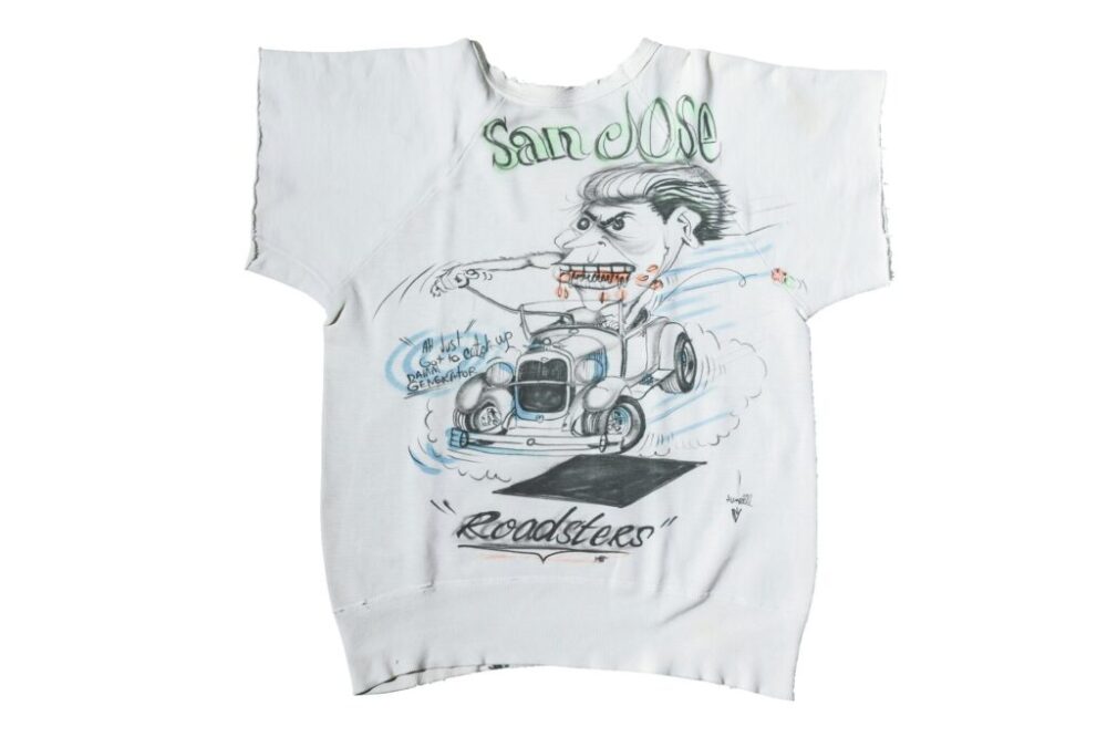 カットオフされたスウェットに、ホットロッドとともにモンスターチックなキャラが乗ったローブローアートらしいデザイン。12万1000円
