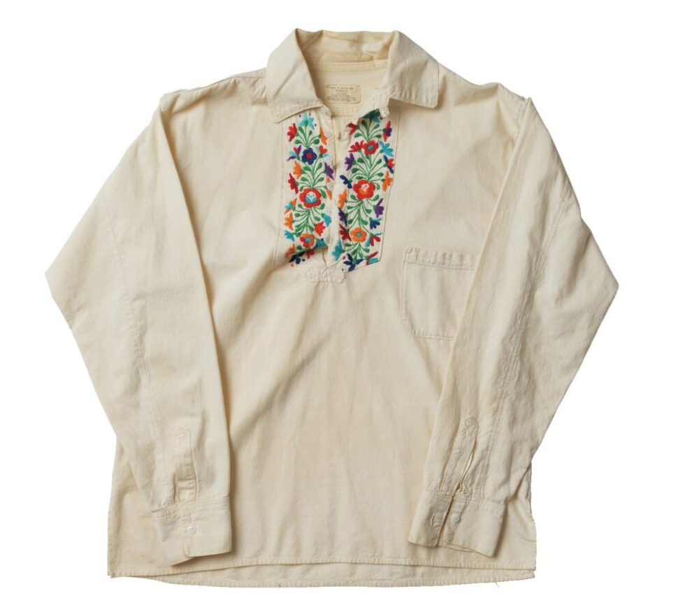 ニューヨークで発見したという’60〜’70年代のメキシカンシャツは、ドライなコットン100%。プルオーバーのデザインが◎。1万3200円