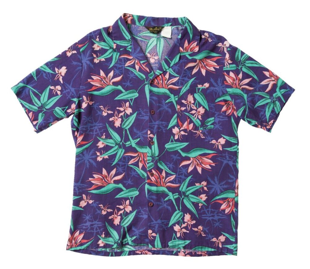 メイドインカリフォルニアのリゾートシャツは、バランスの良いフラワーパターン。タグの雰囲気から’70sくらいのものだ。1万3200円