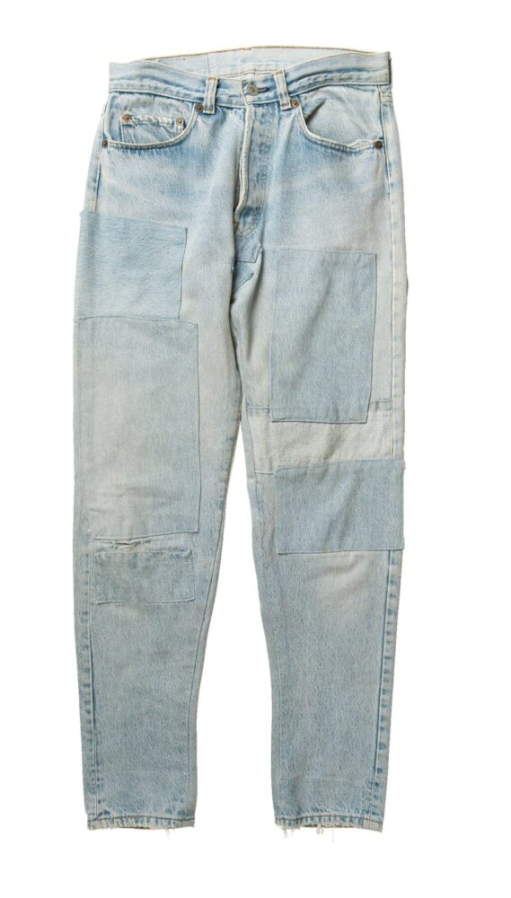 パッチワークカスタムが際立つメイドインUSAのリーバイス501。この手の雰囲気を作るのは、現行だと難しいだろう。1万3200円