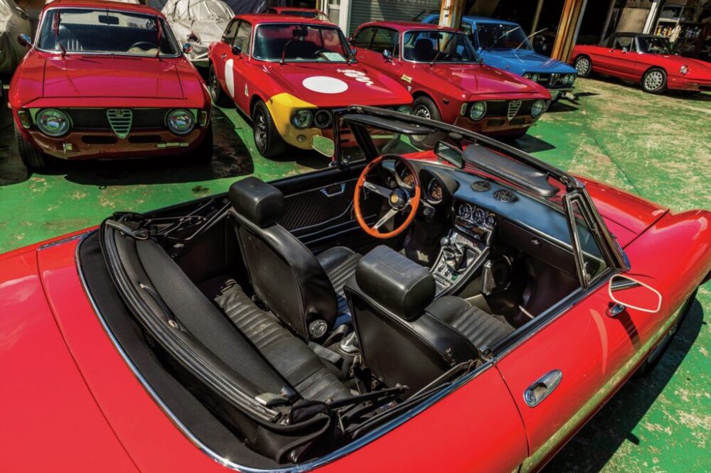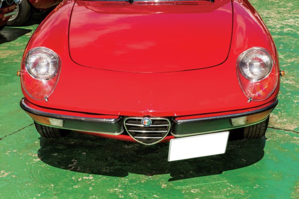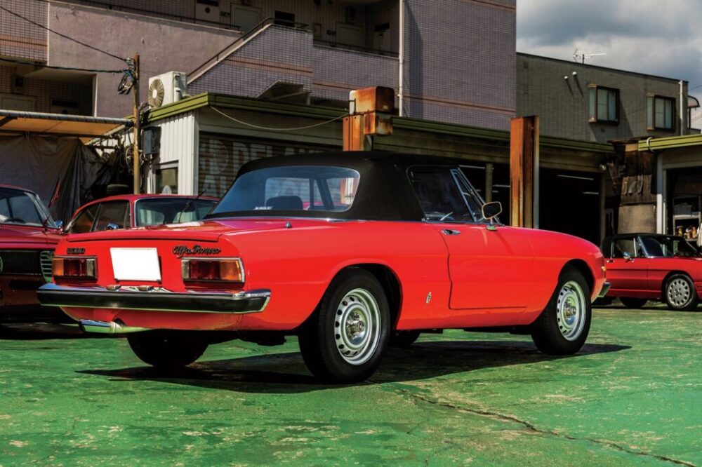 デビュー当初はリアエンドがラウンドした通称「ボートテール」と呼ばれる形状。その後’70年にモデルチェンジをし、テールエンドをスパッと切り落としたような形になり、シリーズ2、通称「コーダトロンカ(イタリア語でカムテールの意味)」となる。今回紹介する個体はこのコーダトロンカ時代のスパイダーだ。