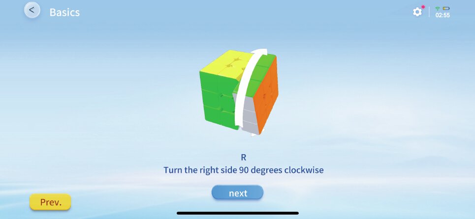 キューブの動きと連動する専用アプリ。チュートリアルやタイムアタック、オンライン対戦など様々な機能をもつが、残念ながら英語と中国語のみの対応となる。