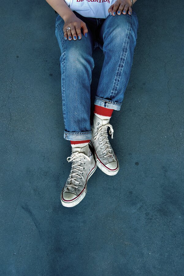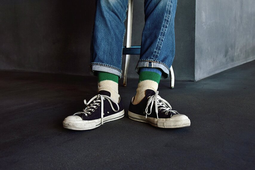 ジーンズやスニーカーとの相性も抜群なデニムソックス。