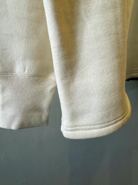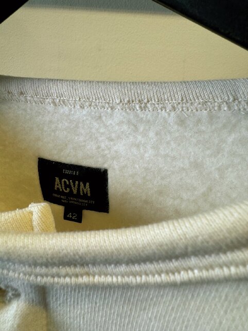 このACVMのスウェットは、手にした瞬間に、近未来がイメージできた。「俺、毎日着ちゃうよ、これ」って感じ。仕事の時も、休日も、出かける時も、家でソファから動かない日も。嗚呼、このスウェットを着て、いつものカレー屋さんに足を運んでしまうのか。カレーを垂らして苦労するんだろうな。それなら、オフホワイトとチャコールの2着が必要だな。カレー屋さんに行くならチャコールだな。一瞬のうちに、そんな想像を巡らせて2色買うことに決めた。着て生活している姿を想像できる買い物に失敗はない。重要なのはスペックよりもイメージだよ。