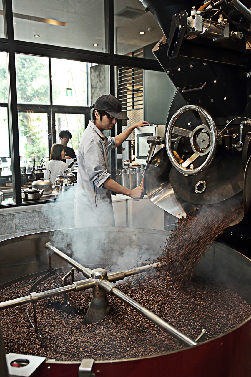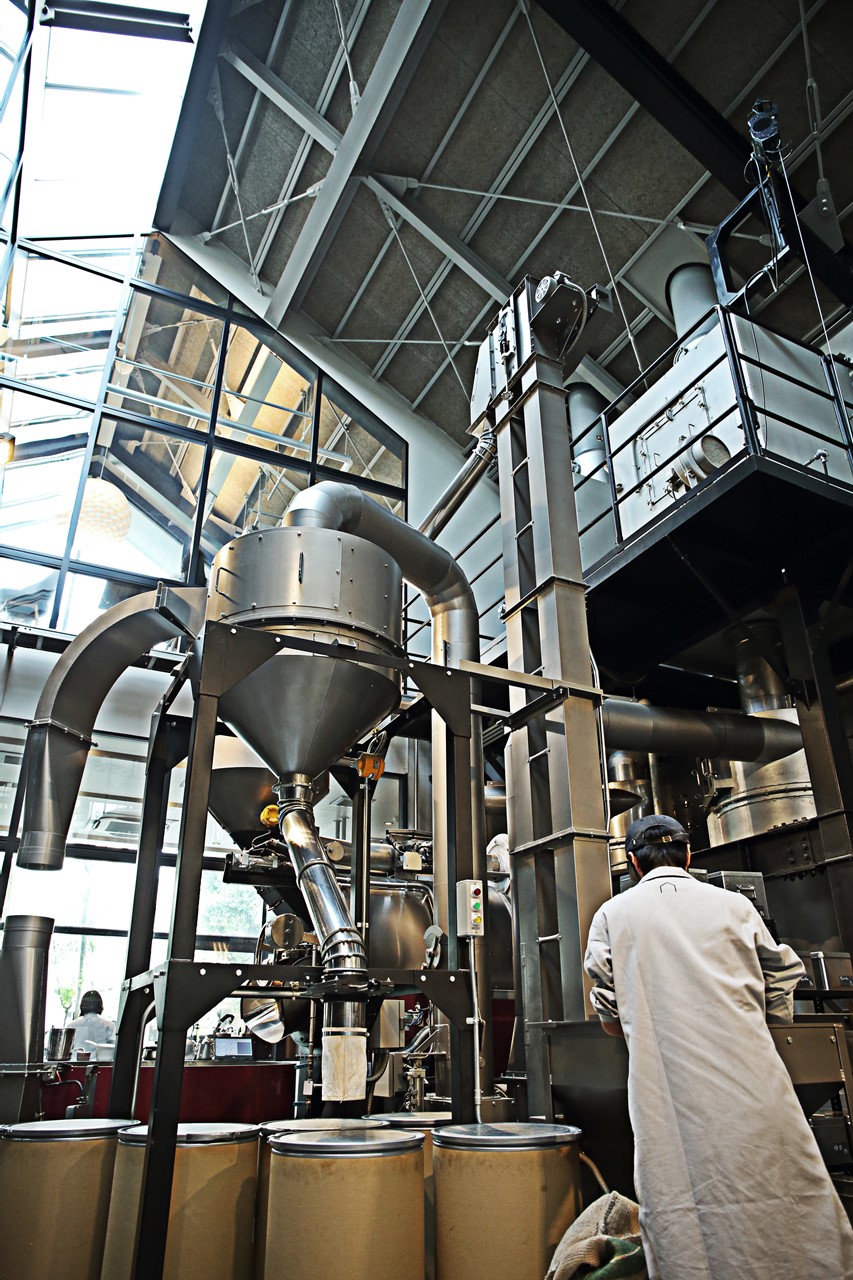 中央の焙煎所ではスペシャルティコーヒーのみが焙煎される。神乃珈琲では、スペシャルティコーヒー同士のブレンディングを行い、3つの最高級ブレンドが誕生した。