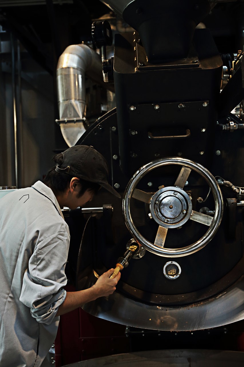 ここで焼くのは一級品のスぺシャルティコーヒーのみ。一日に何バッチも焙煎する。