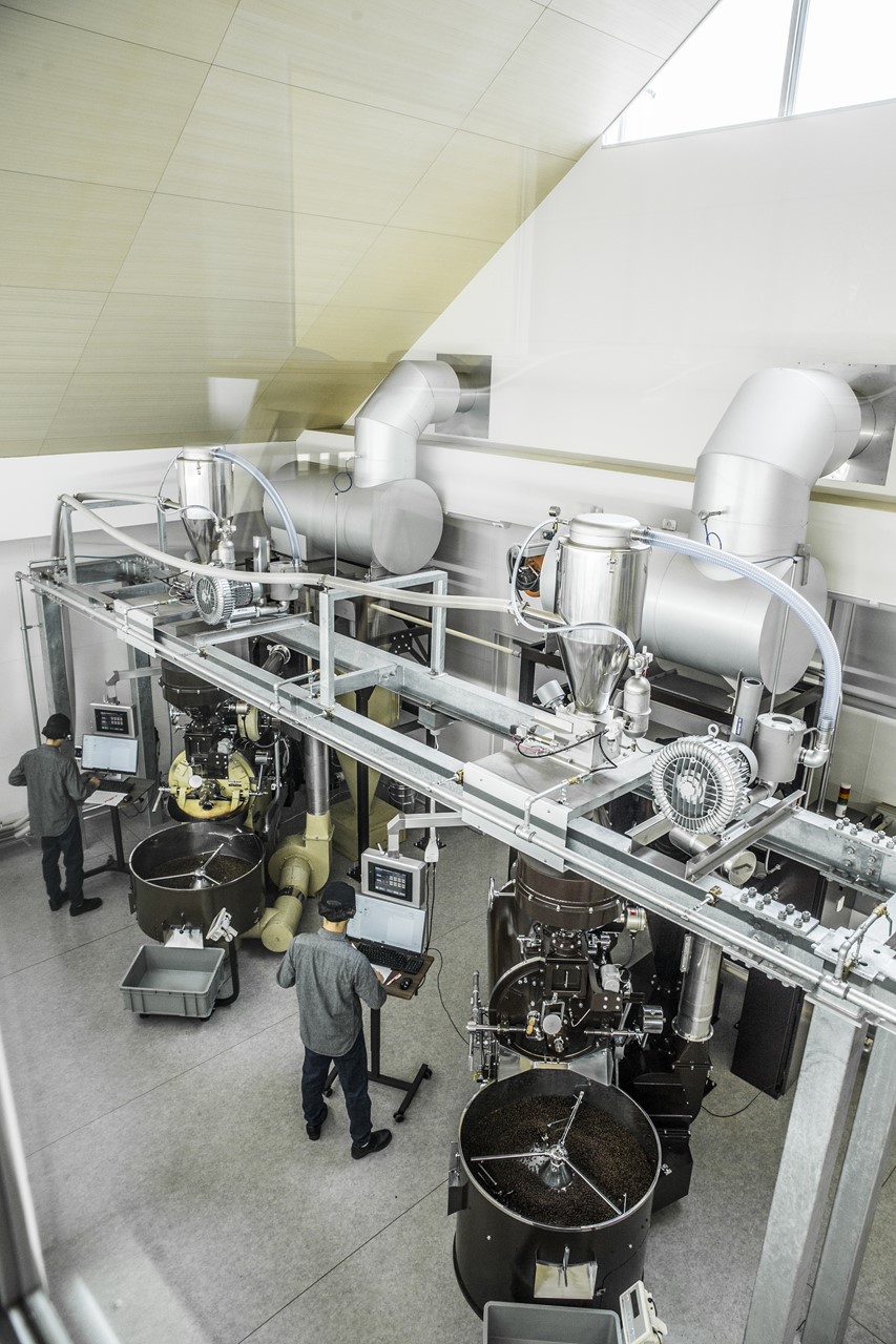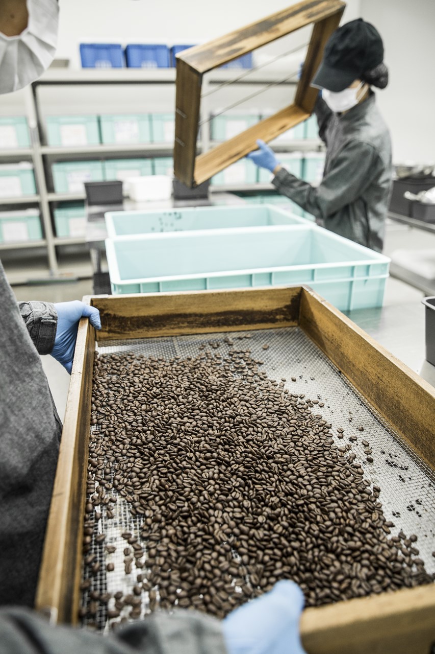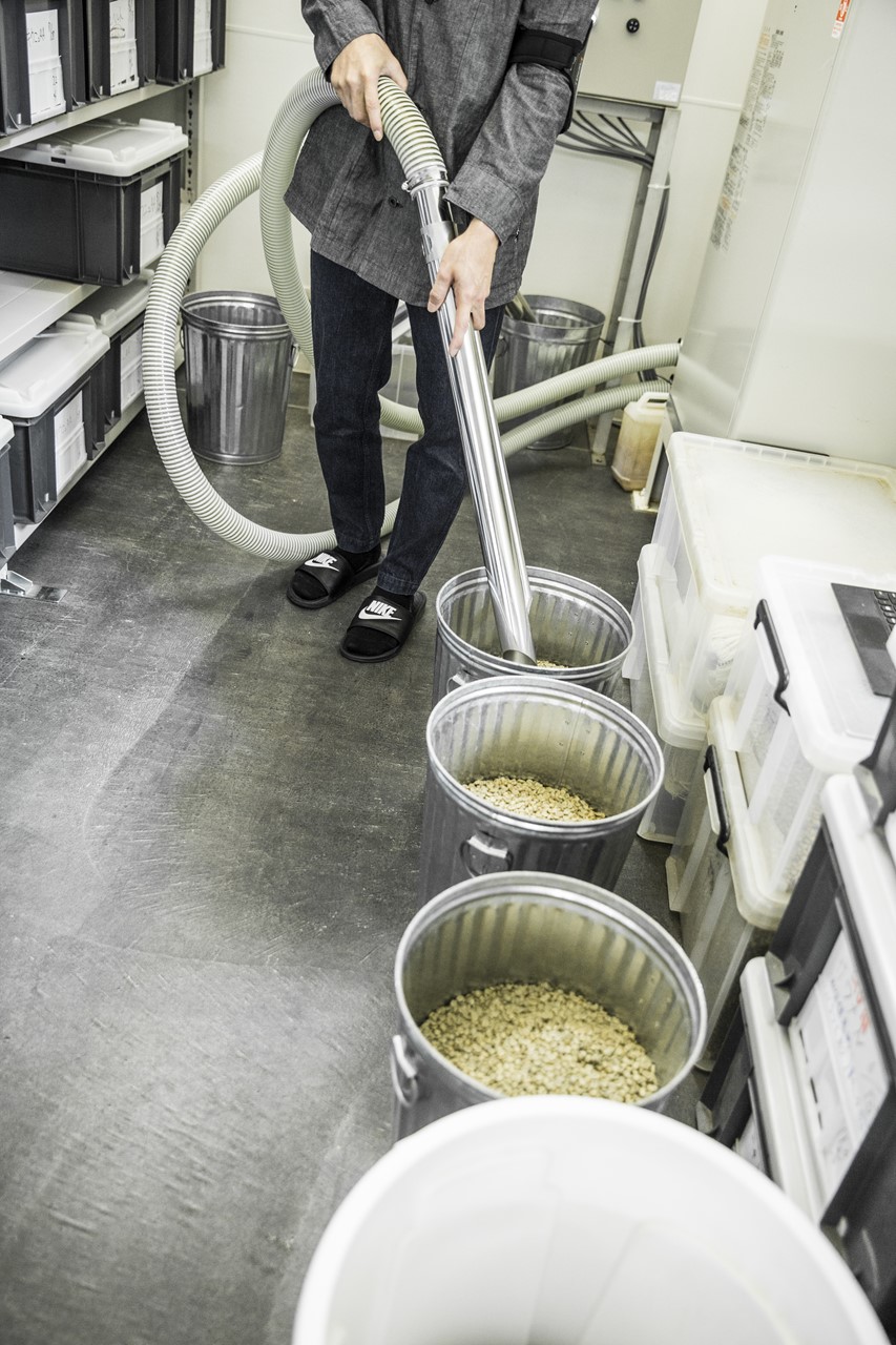 従来の自家焙煎店とは次元が異なる、豆のクオリティコントロールを行うためである。生豆と焙煎後の豆が混在しないようフロアを完全にわけ、焙煎後の豆がクリーンで衛生的でいられるように徹底。さらに異物や不良豆を極限まで除去できるような体制をつくりあげた。焙煎過程のすべてを管理した、まさにスペシャルティコーヒーの究極の焙煎所である。