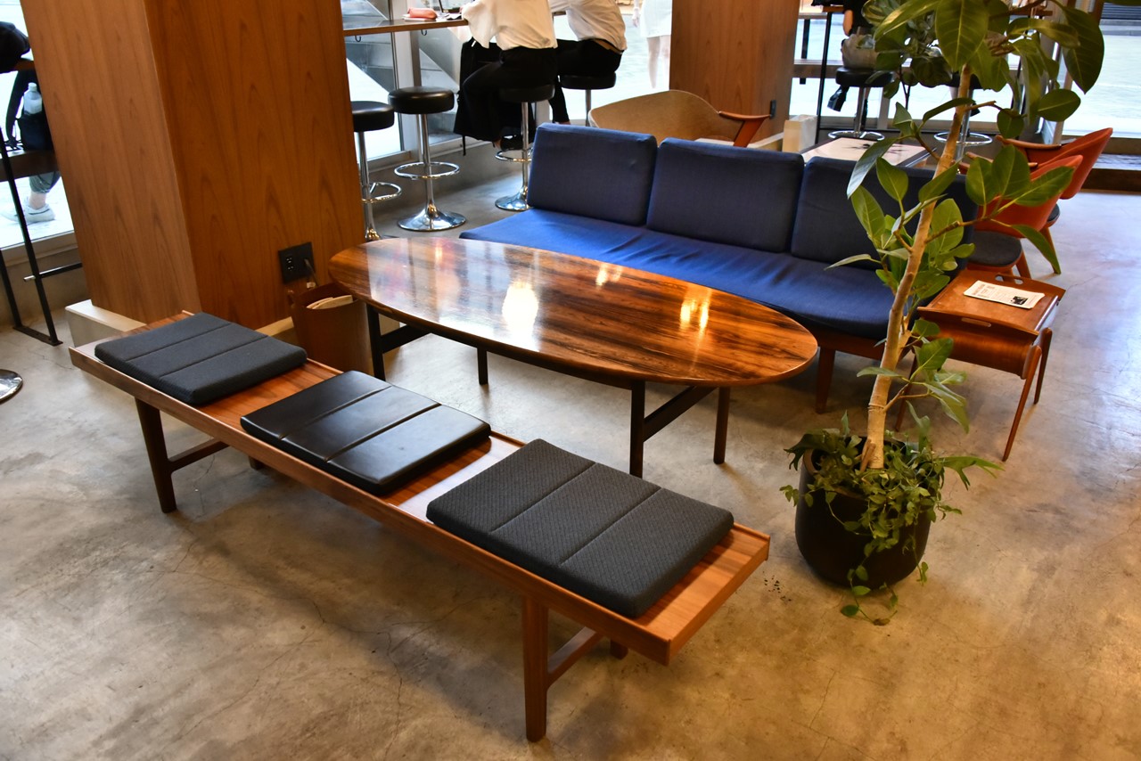 海外の観光客が多い街だけに、店内も外国人利用客が目立つ。またソファやテーブルなどのインテリアは主にノルウェー製ヴィンテージで構成された空間となっているのも同店の特徴のひとつ。