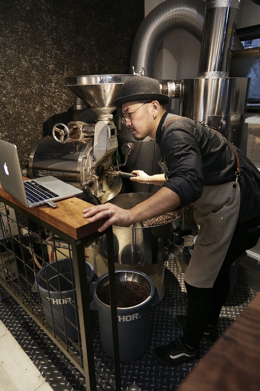 また店舗の奥にレイアウトされた焙煎機はPCに接続され、ロースト時の温度変化のログを取りながら焙煎を行うのが吉田さんの流儀だ。